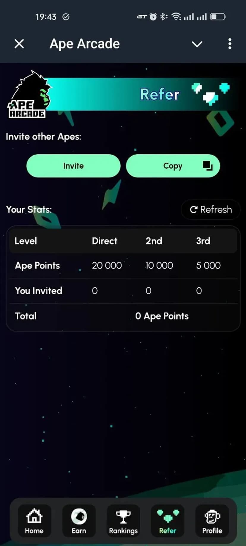 - Игровой процесс: выбор доступной игры или квеста и выполнение заданий для получения Ape Points.