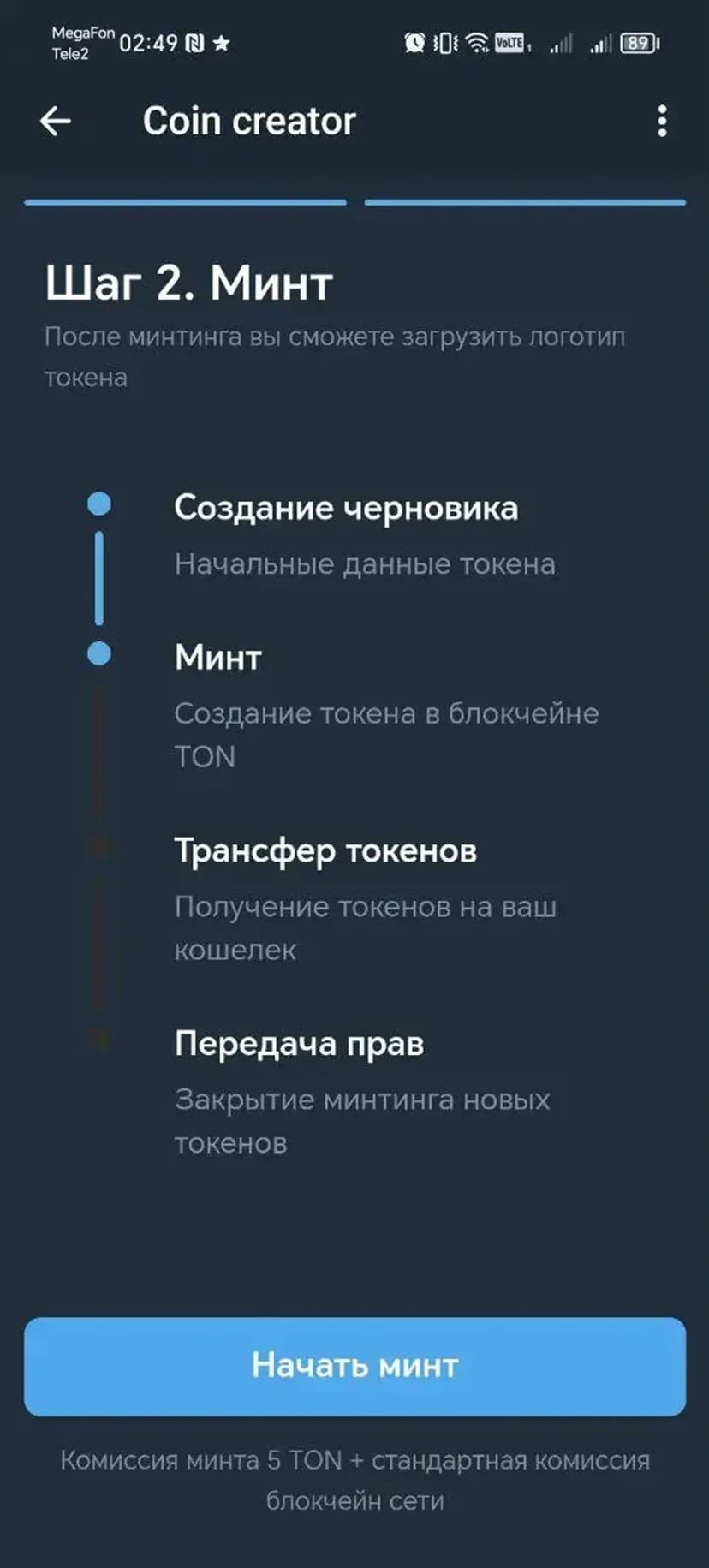 Все операции выполняются в интерфейсе Telegram и не требуют навыков программирования. После выпуска вы становитесь единственным владельцем токенов и свободно распоряжаетесь ими.