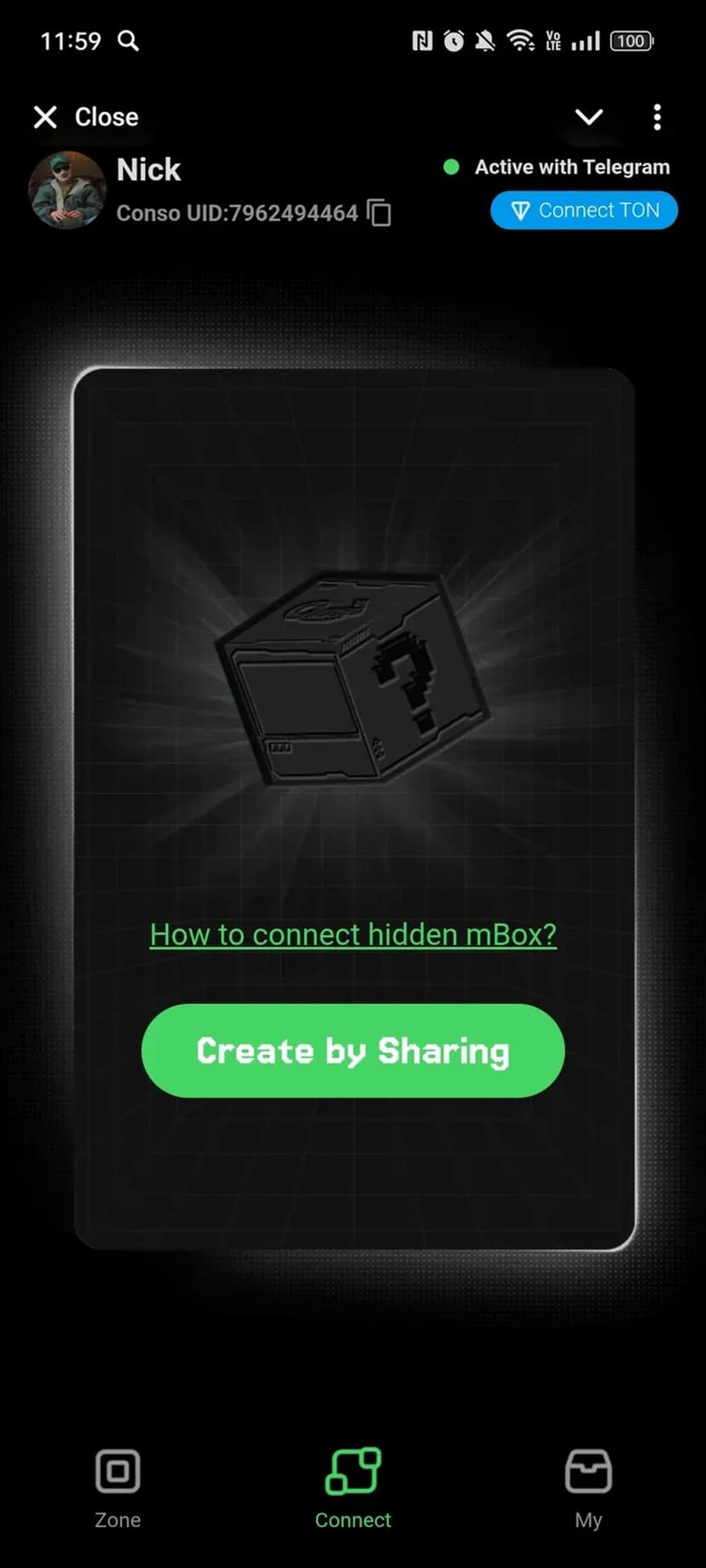 *Нажимая "Открыть в Telegram", вы перейдете к приложению Conso mBox в мессенджере Telegram
