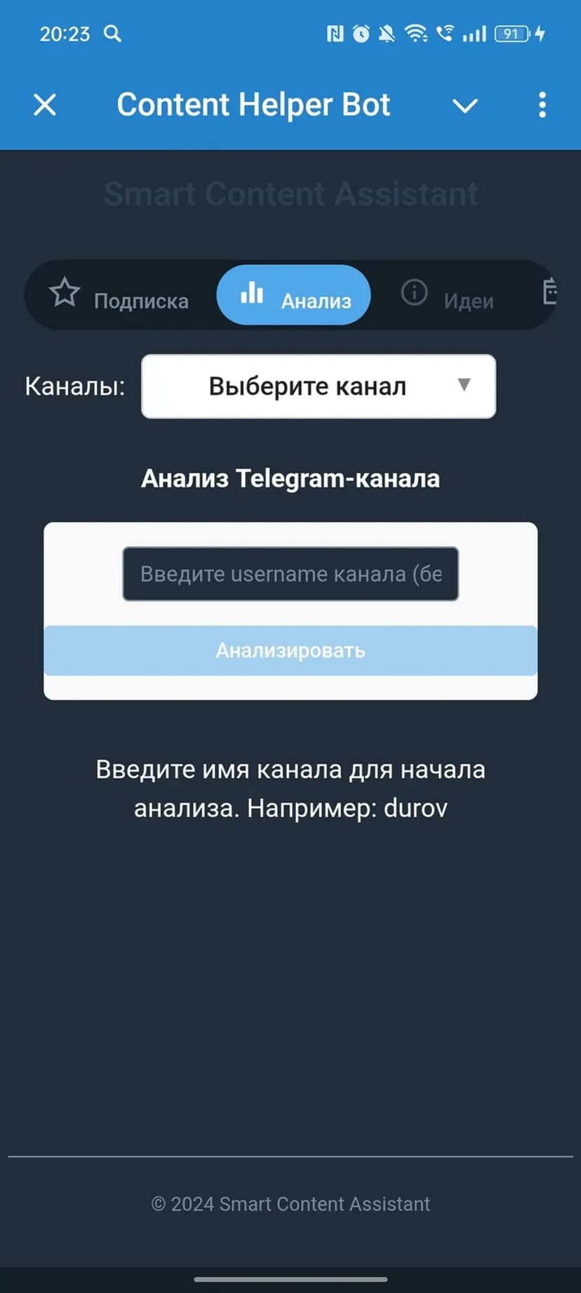 Аналитика, генерация идей и инструменты управления публикациями собраны в одном интерфейсе, чтобы облегчить работу администраторов каналов и повысить эффективность контент‑стратегии.