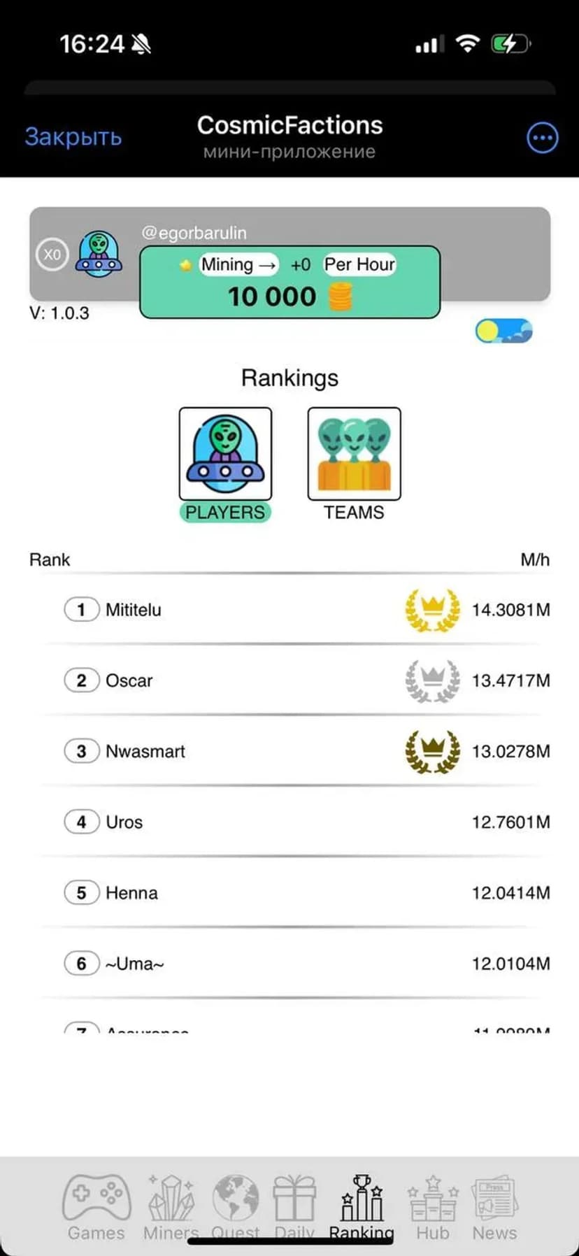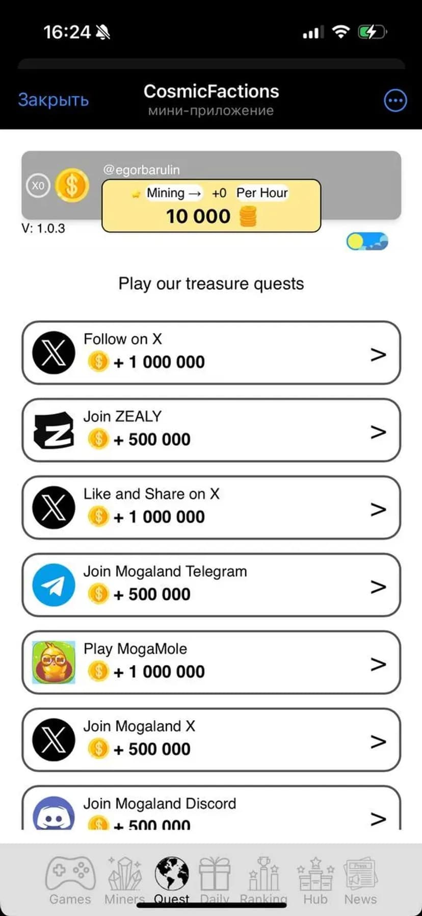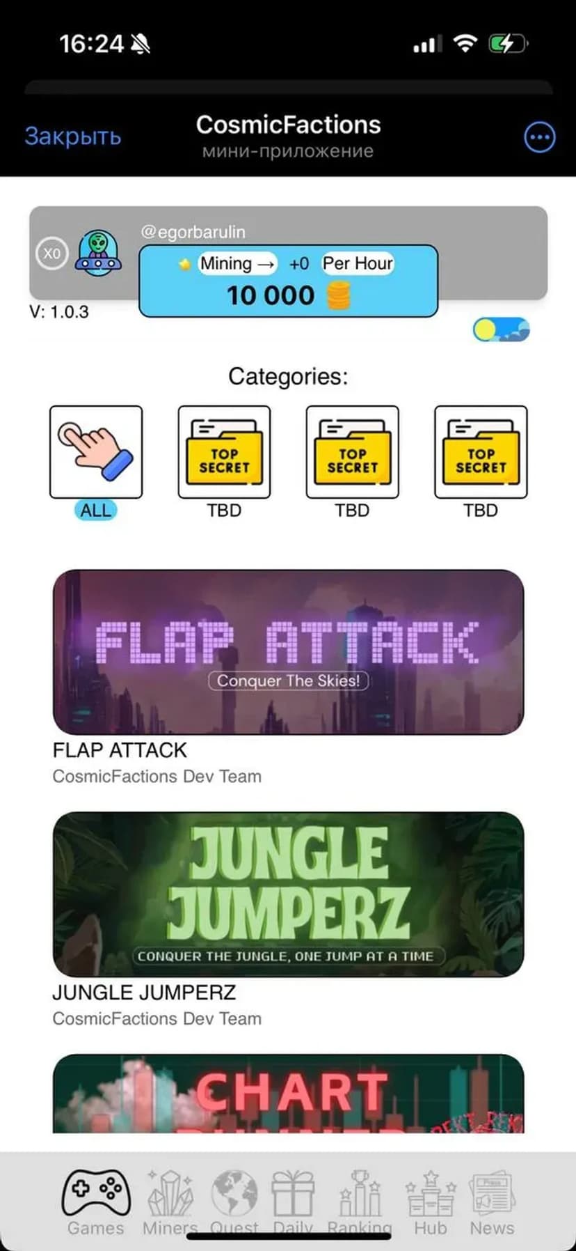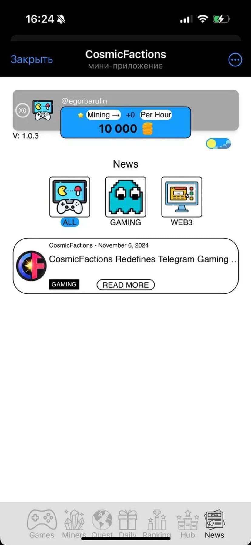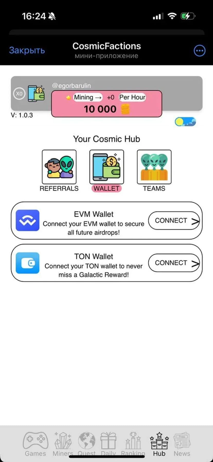 Cosmix предоставляет доступ к игровым сервисам на блокчейнах EVM и TON прямо через Telegram: проекты CosmicFactions и партнёров, квесты, турниры, лидерборды и механики для получения токенов.