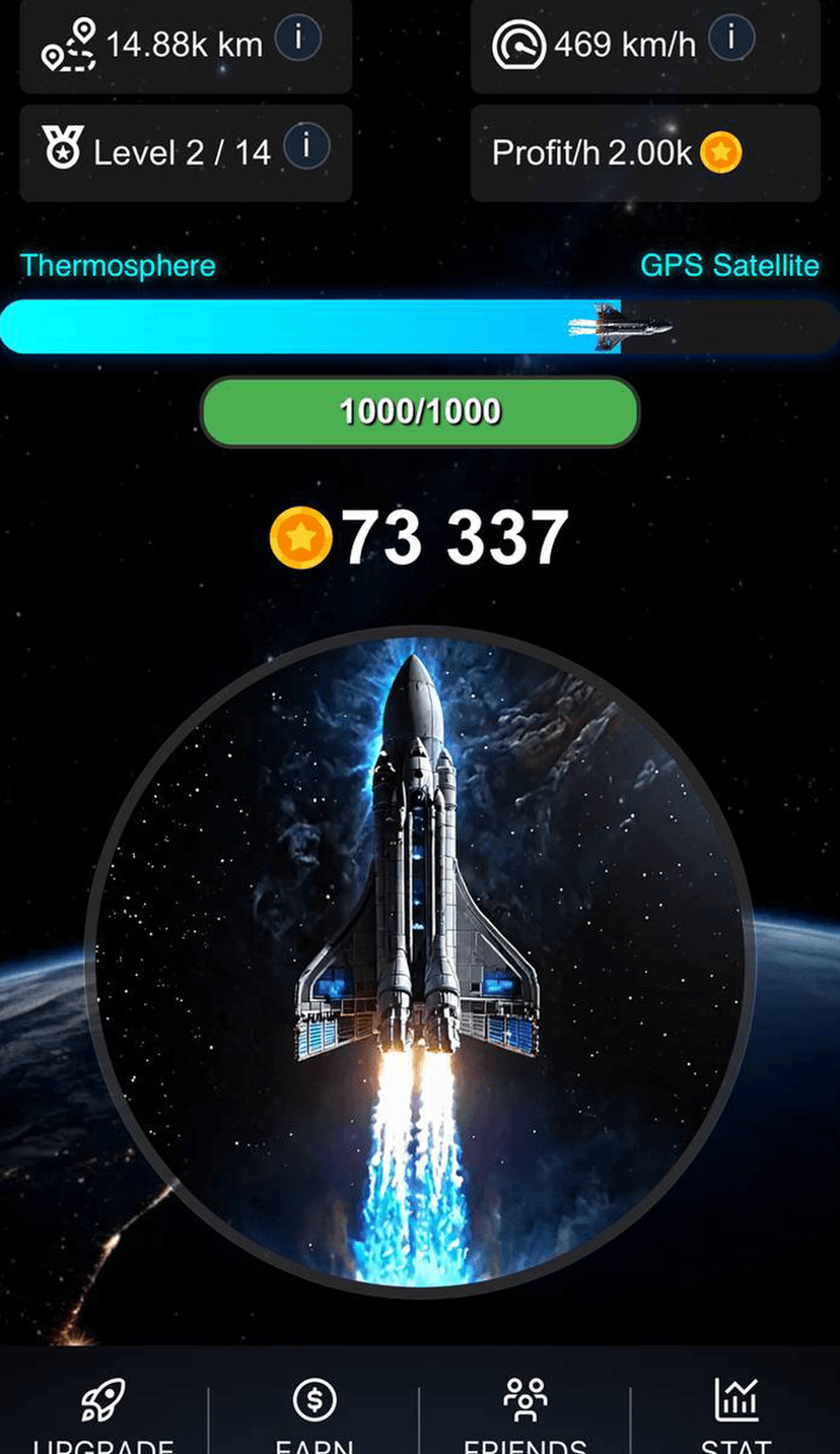 - Система апгрейдов: трать заработанную валюту на улучшение характеристик корабля и ускорение прогресса.
