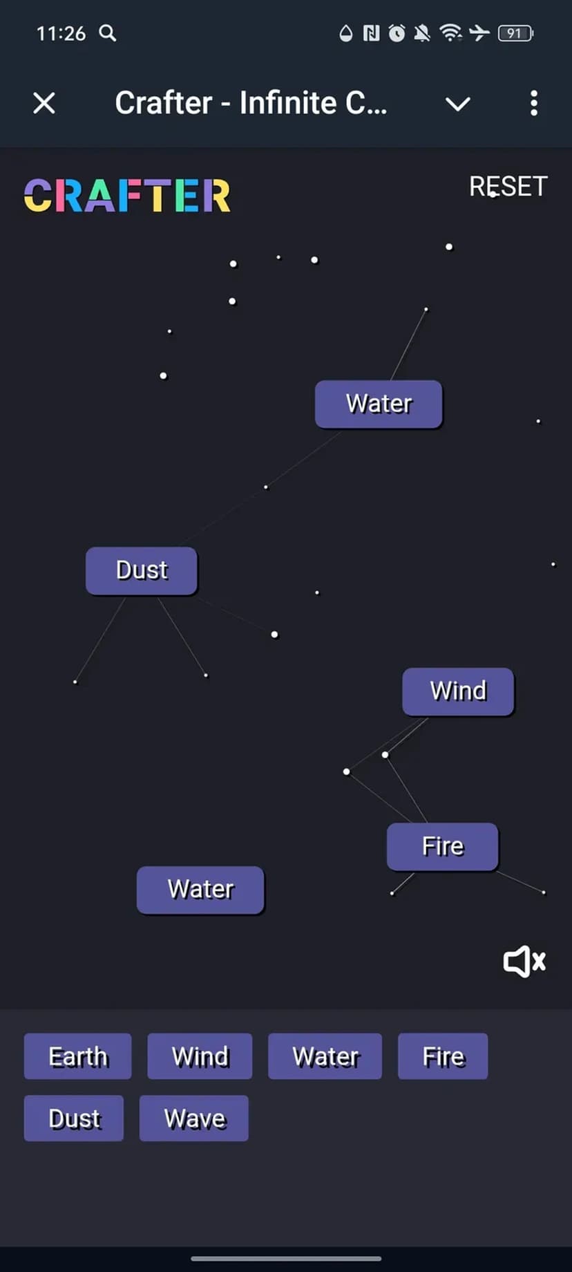 Crafter — простая и минималистичная игра, где из четырёх базовых стихий — земля, огонь, вода и воздух — формируются новые предметы и явления.