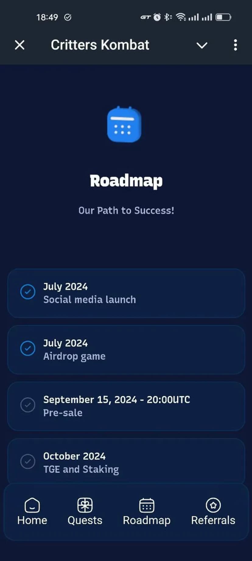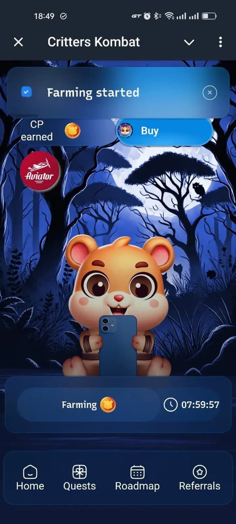 Critters Kombat — динамичная мини-игра с механикой tap-to-earn, где игроки управляют виртуальными существами — криттерами. Активные нажатия на экран влияют на исход пошаговых боёв и на развитие персонажей.