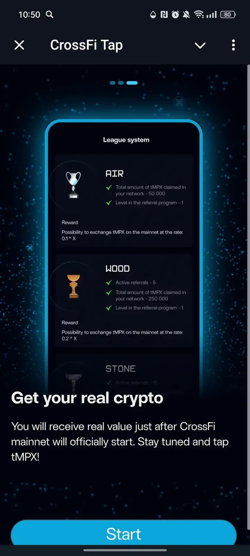 *Нажимая "Открыть в Telegram", вы перейдете к приложению CrossFi Tap в мессенджере Telegram