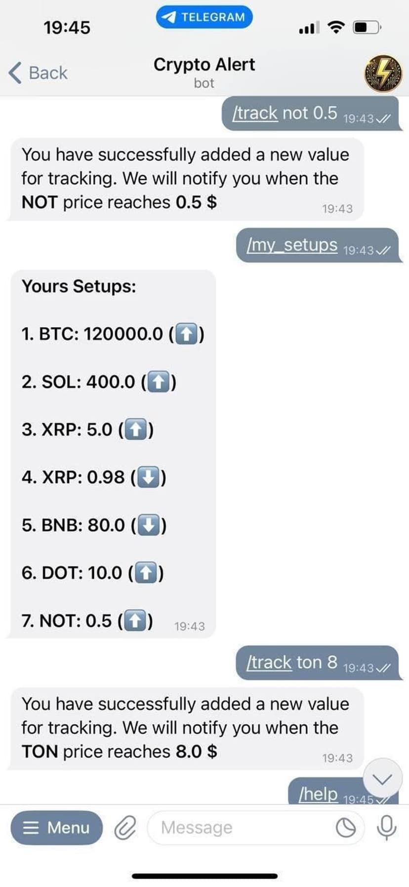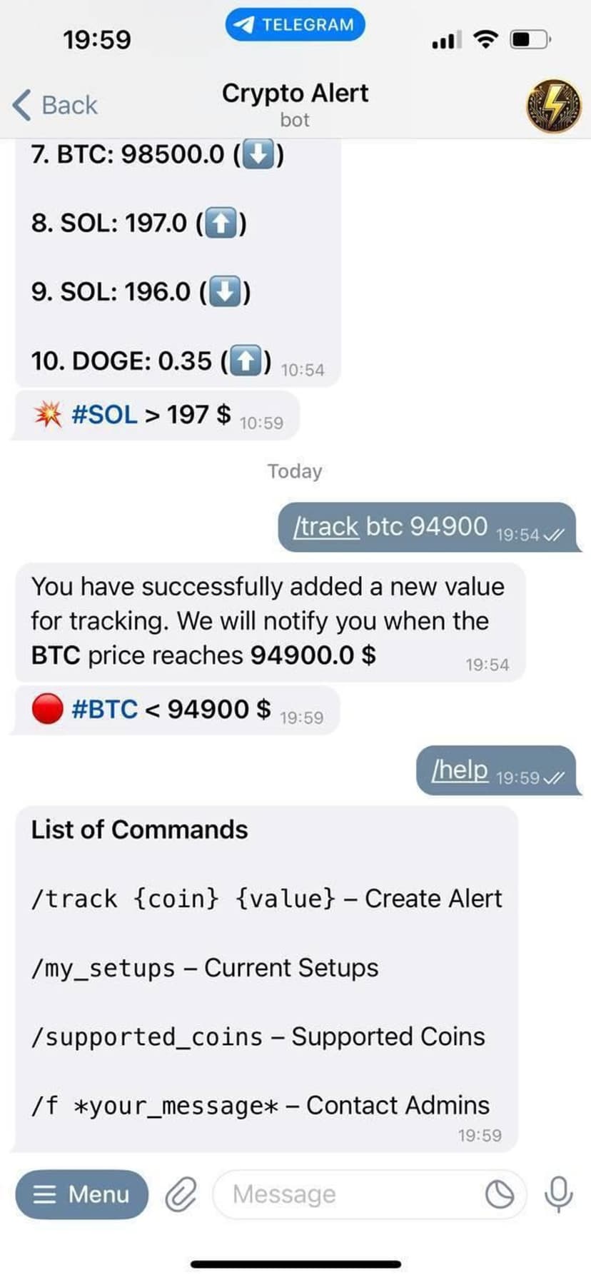 Мгновенные оповещения при достижении заданных цен выбранных криптомонет