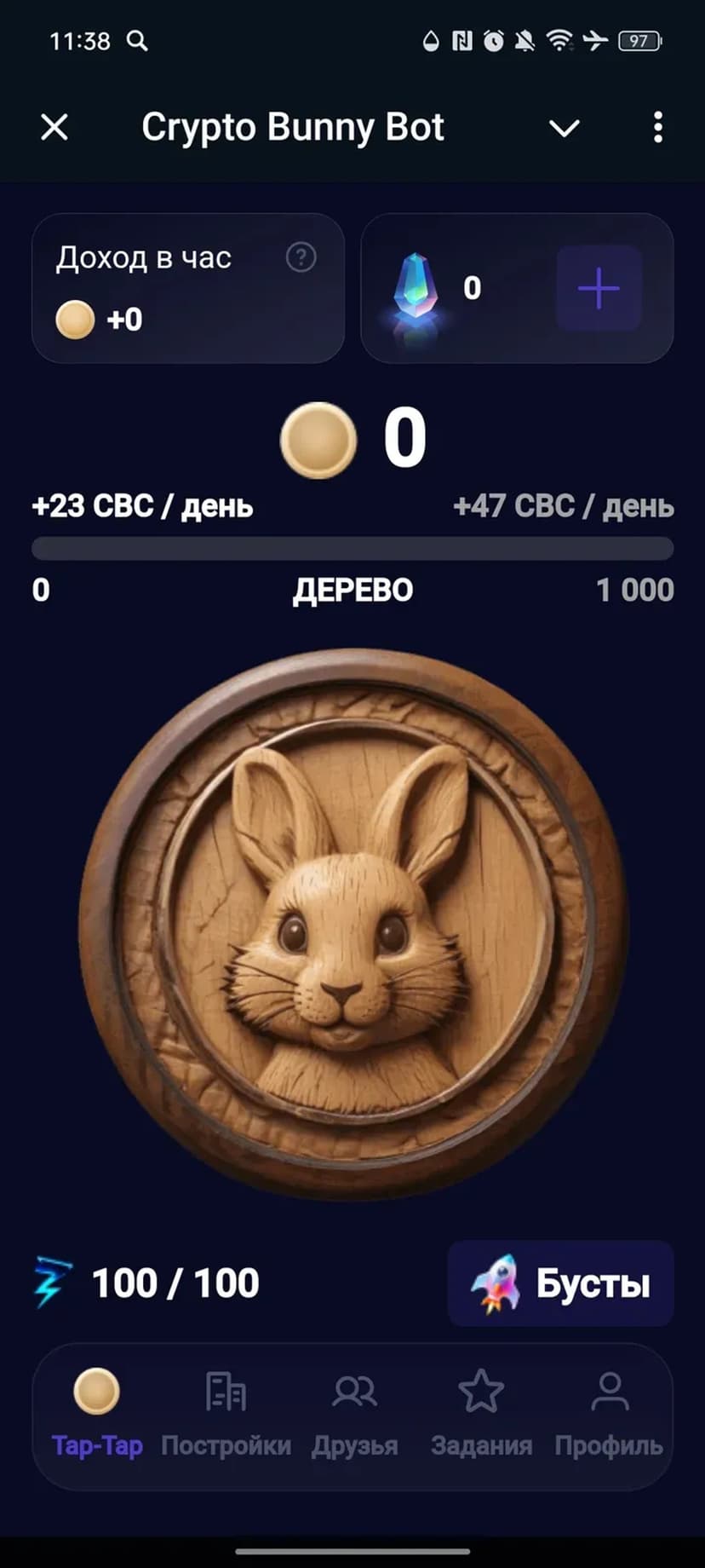 *Нажимая "Открыть в Telegram", вы перейдете к приложению Crypto Bunny Bot в мессенджере Telegram