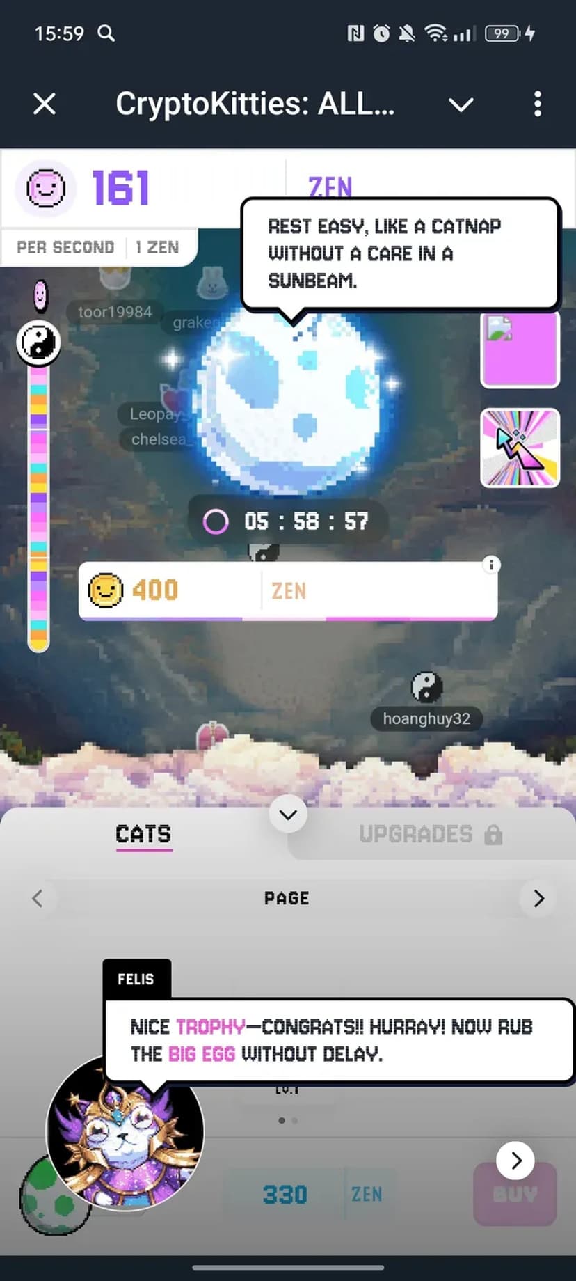 CryptoKitties: ALL THE ZEN! — необычная «яйценосная» мини‑игра внутри Telegram с коллекционным и соревновательным элементом. Проект привлекает живое сообщество и подходит для коротких игровых сессий без установки дополнительных приложений.