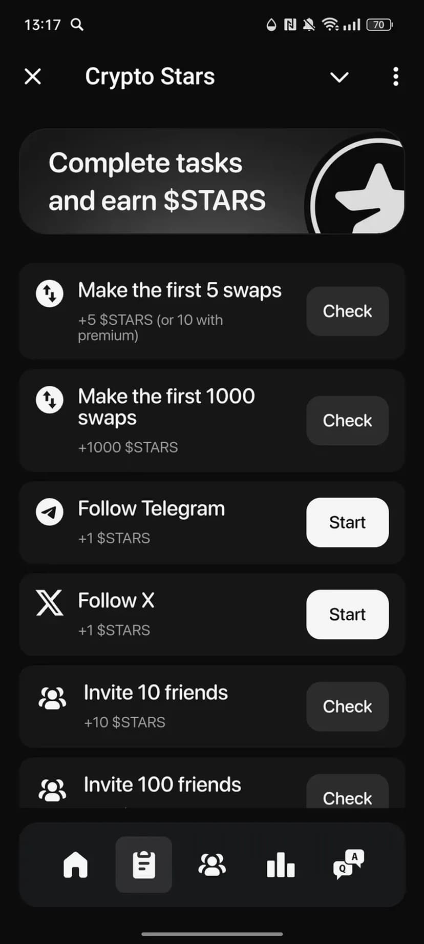 - Заработок дополнительных токенов через выполнение заданий.