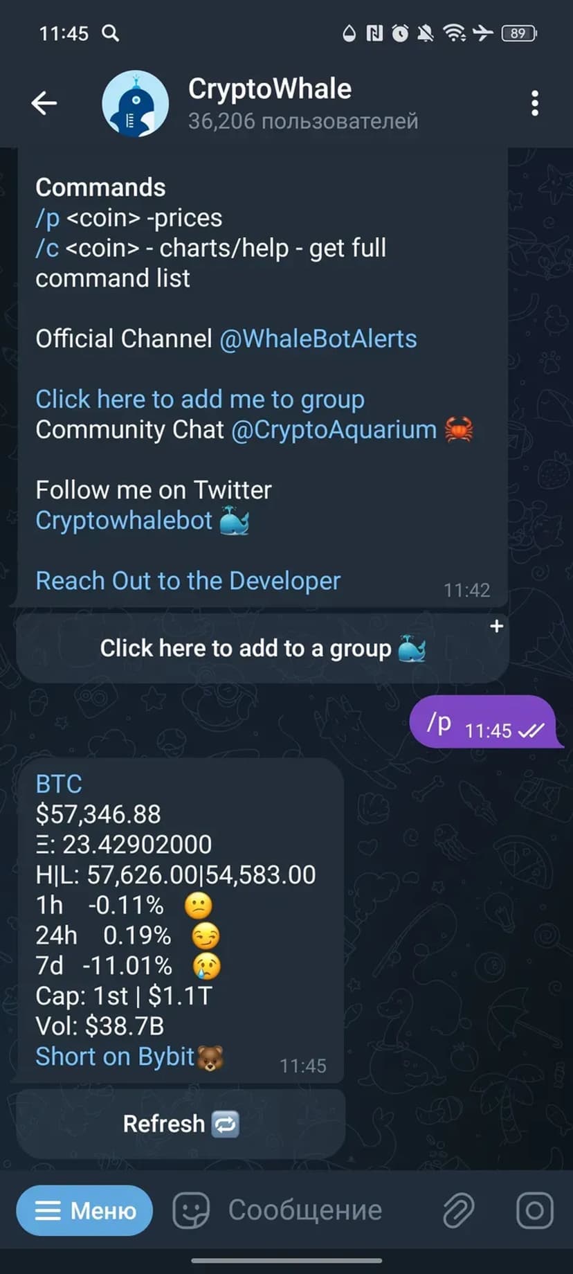 *Нажимая "Открыть в Telegram", вы перейдете к приложению CryptoWhale в мессенджере Telegram