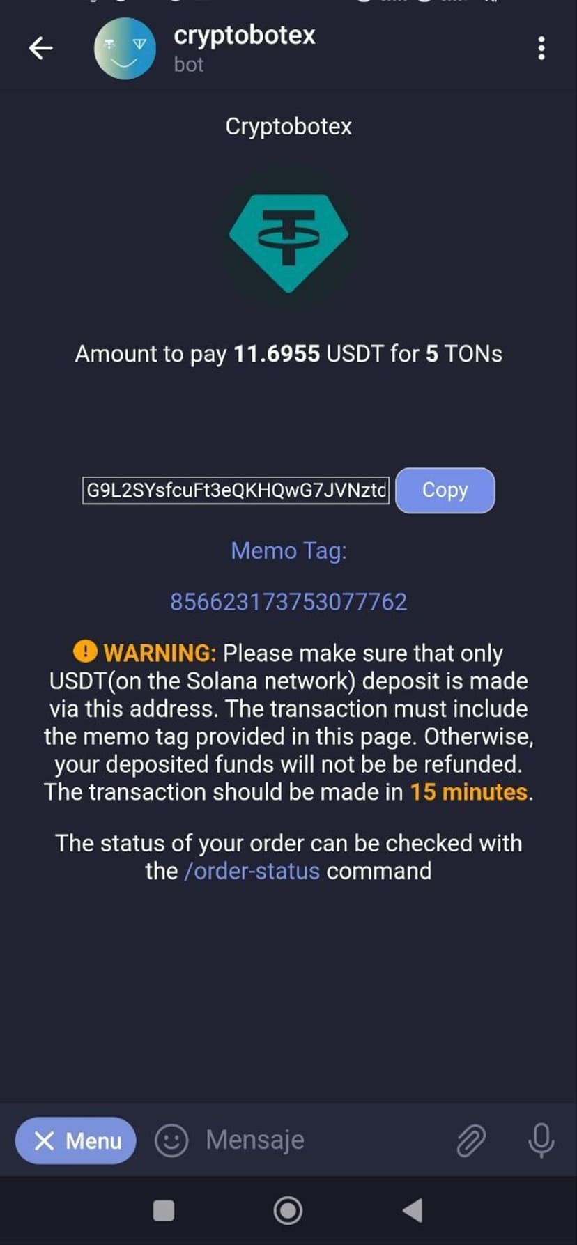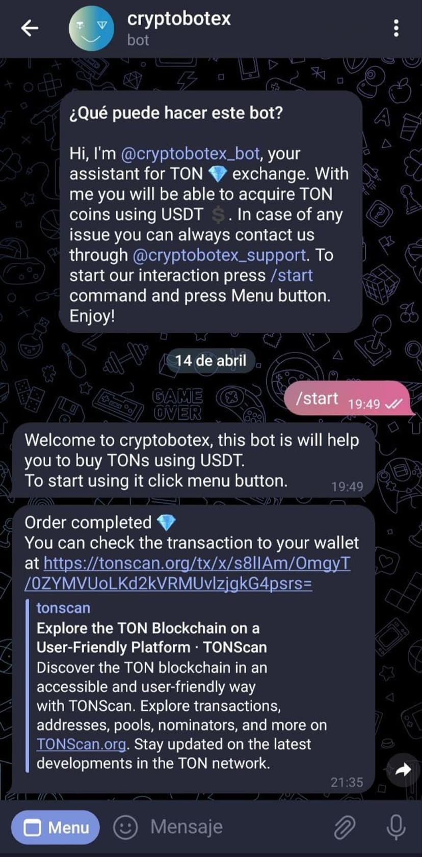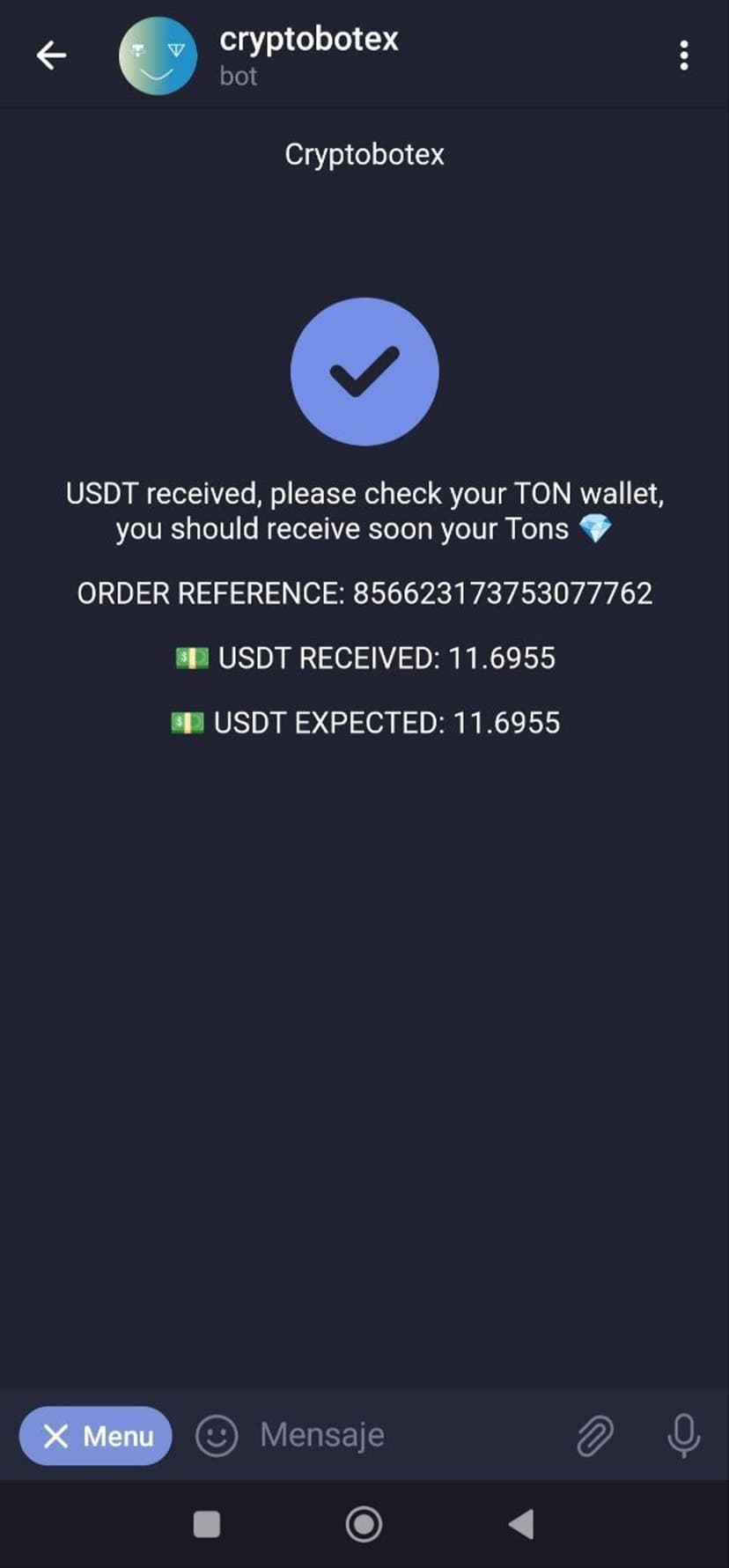Cryptobotex упрощает обмен USDT на токены TON через диалоговый интерфейс в Telegram: укажите сумму и получите пошаговые инструкции для перевода.