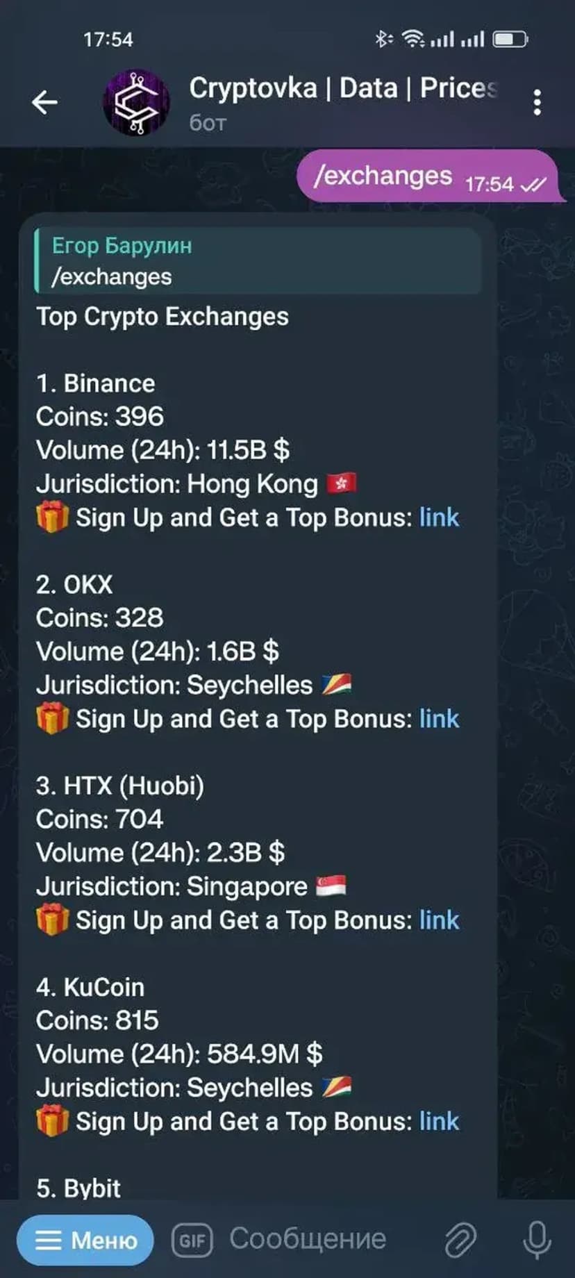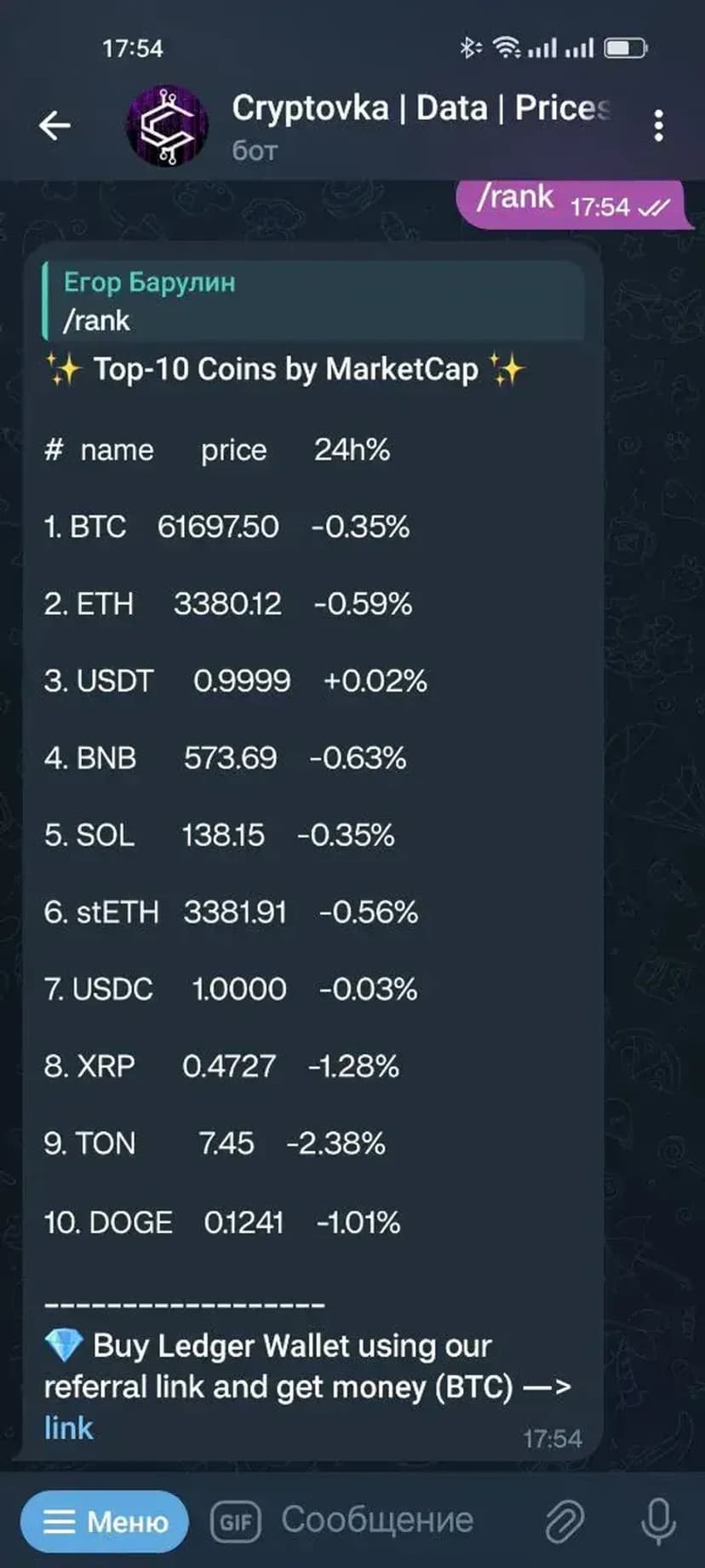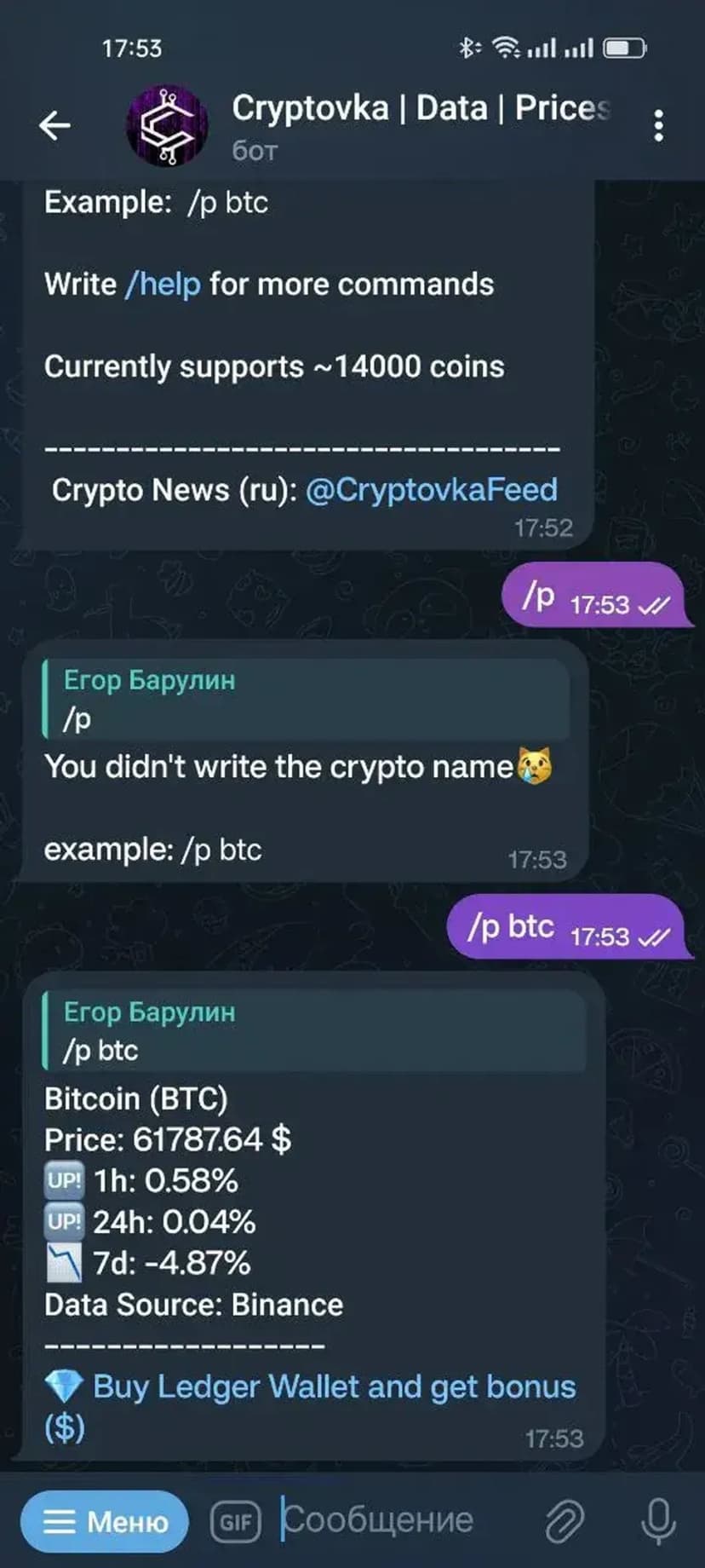 - Получение справочной информации по криптовалютам для чатов и сообществ