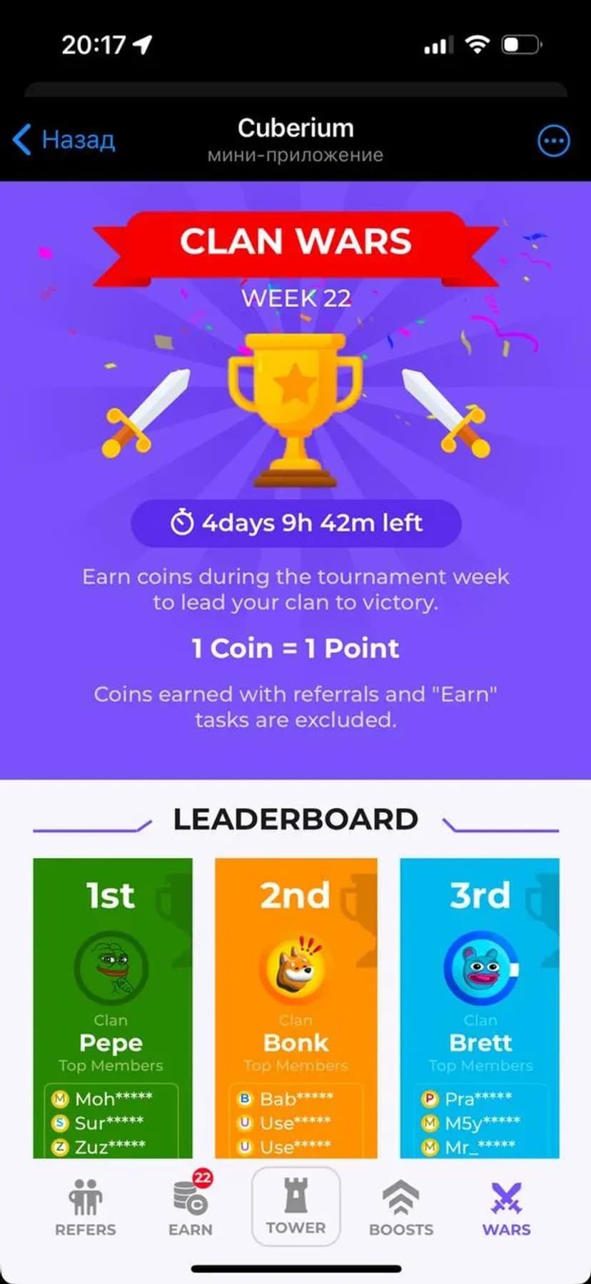 Примеры использования: ежедневный фарм и прокачка, совместная игра в кланах, сбор и обмен трофеями, участие в специальных ивентах и охота за уникальными мемами.