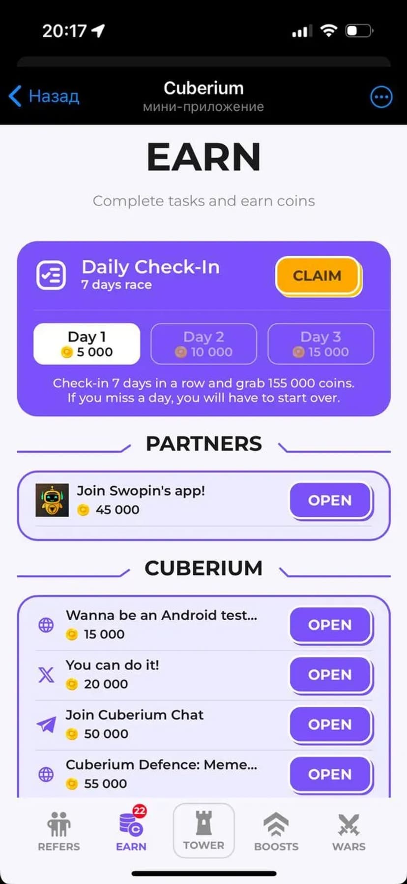 *Нажимая "Открыть в Telegram", вы перейдете к приложению Cuberium в мессенджере Telegram