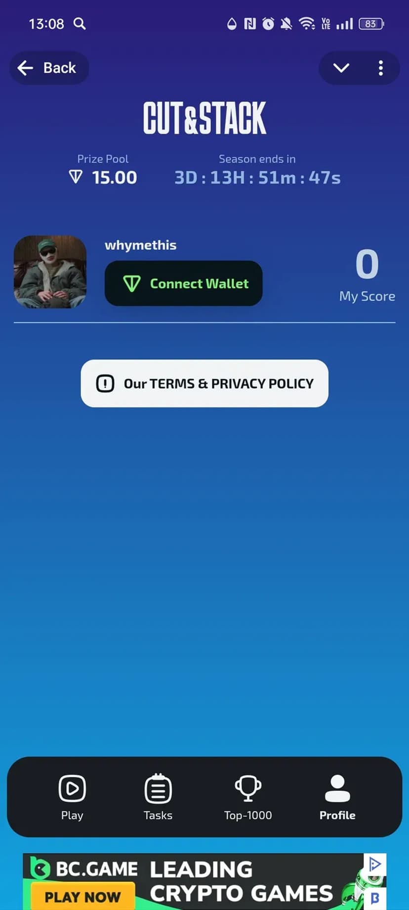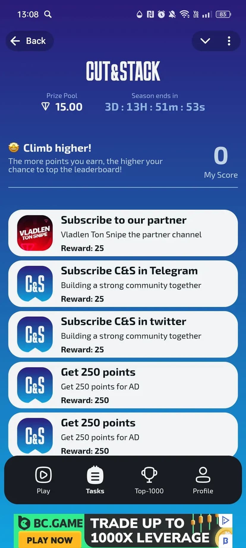 Cut Stuck Game — мини-игра в Telegram, где игроки возводят башню, накапливают очки и обменивают их на криптовалюту $TON. Для старта достаточно авторизации через Telegram — отдельная регистрация не требуется. Игра предоставляет равные условия: никаких платных преимуществ, успех зависит от навыков и стратегии.