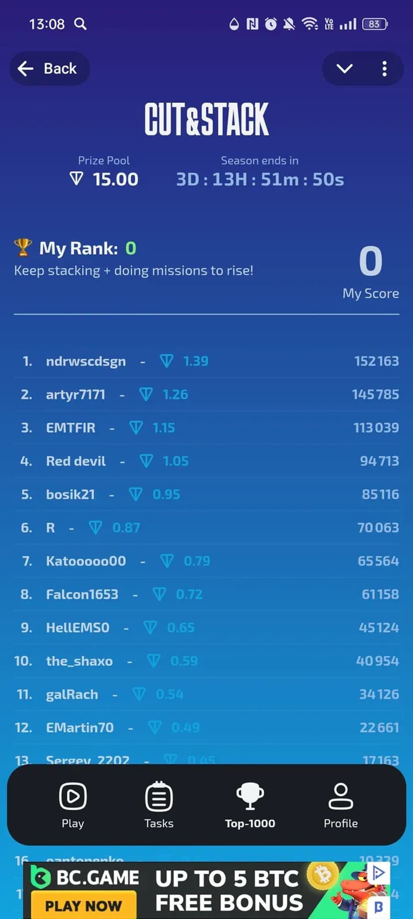 Строй башню, набирай очки и обменивай их на $TON в честных соревновательных матчах