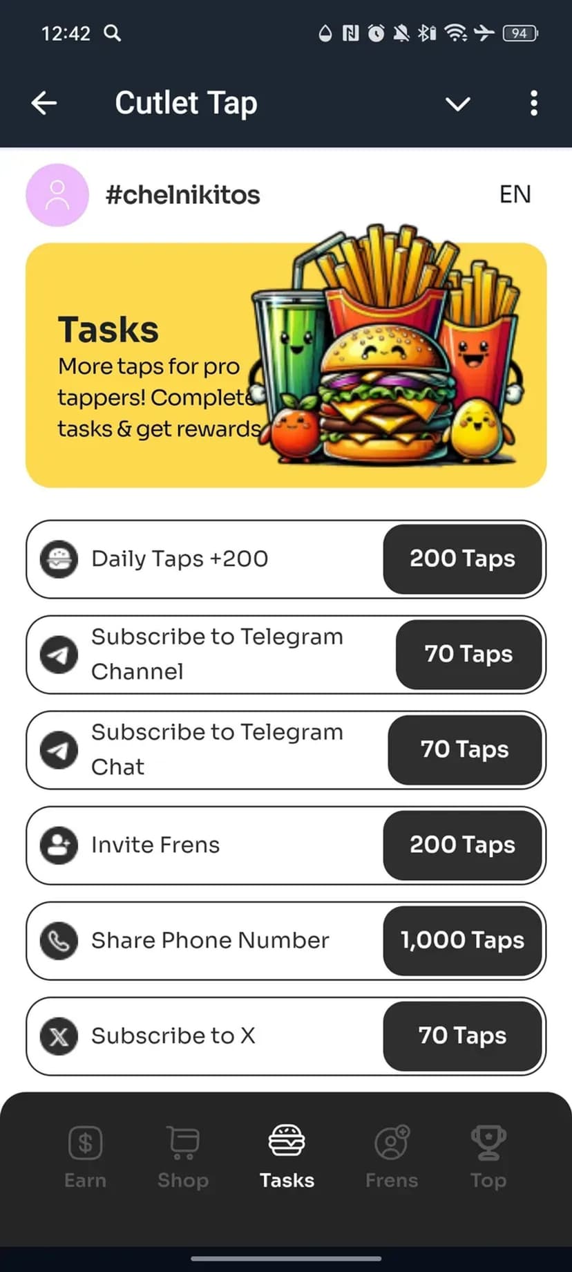 *Нажимая "Открыть в Telegram", вы перейдете к приложению Cutlet Tap в мессенджере Telegram