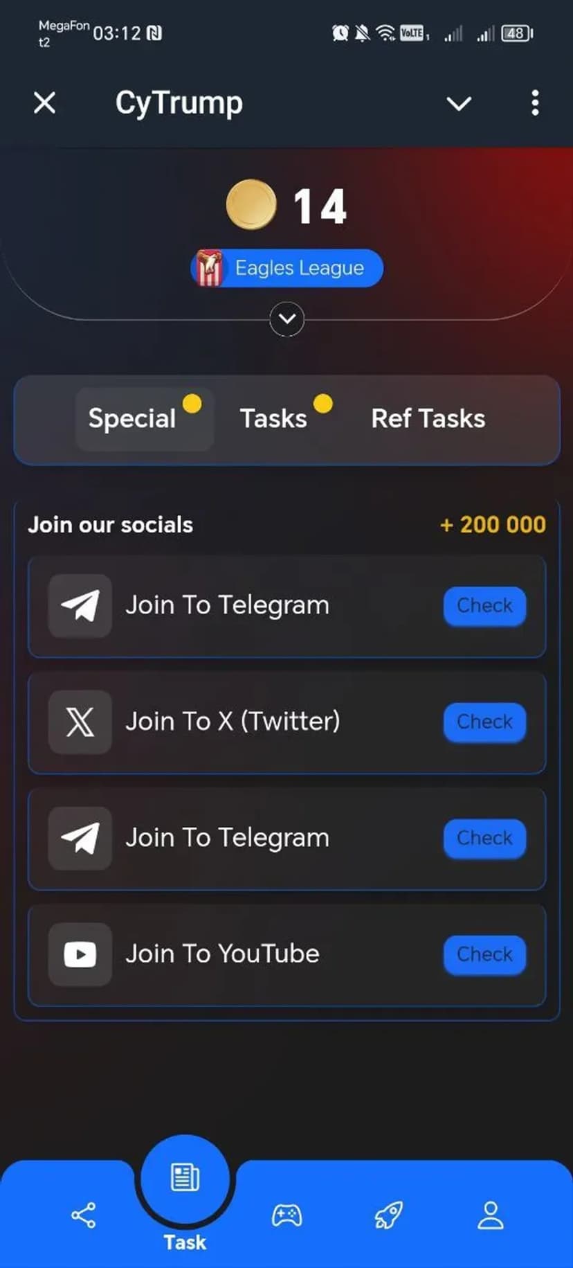 CyTrump — мини‑приложение в Telegram, связанное с токенами на мультичейн‑блокчейне и поддержкой отдельных общественно‑политических инициатив. Сервис рассчитан на пользователей, интересующихся криптовалютами, токенами и сообществами вокруг определённых фигур или идей.