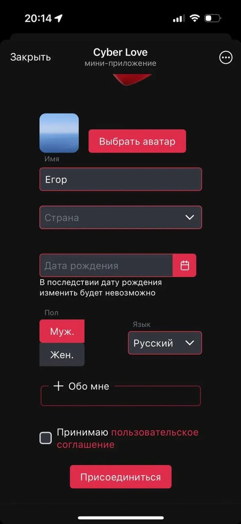 *Нажимая "Открыть в Telegram", вы перейдете к приложению Cyber Love в мессенджере Telegram