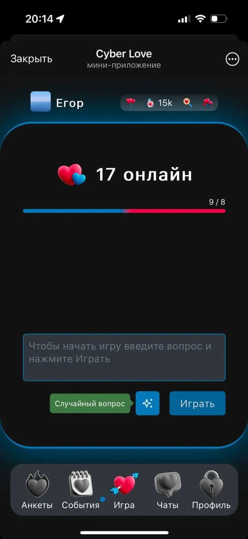 Cyber Love — социальная геймифицированная игра в Telegram, где участники собирают внутриигровую валюту Love Coins и используют накопленные очки для участия в розыгрышах с реальными денежными призами.