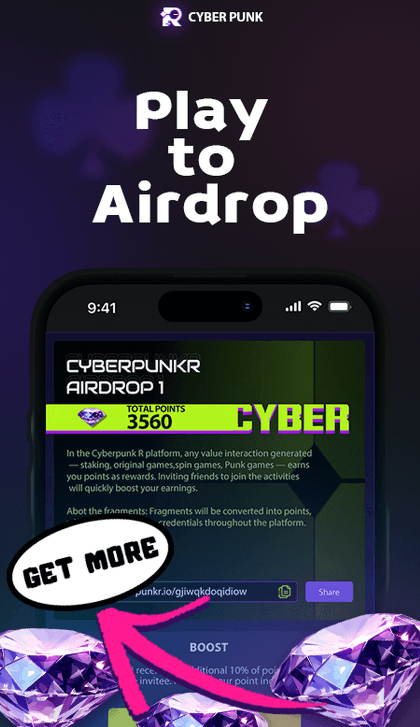 Cyberpunk R сочетает игровые механики и криптоэкономику: получайте очки и токены, участвуйте в распределении прав и получайте airdrop’ы при прозрачных on-chain транзакциях.