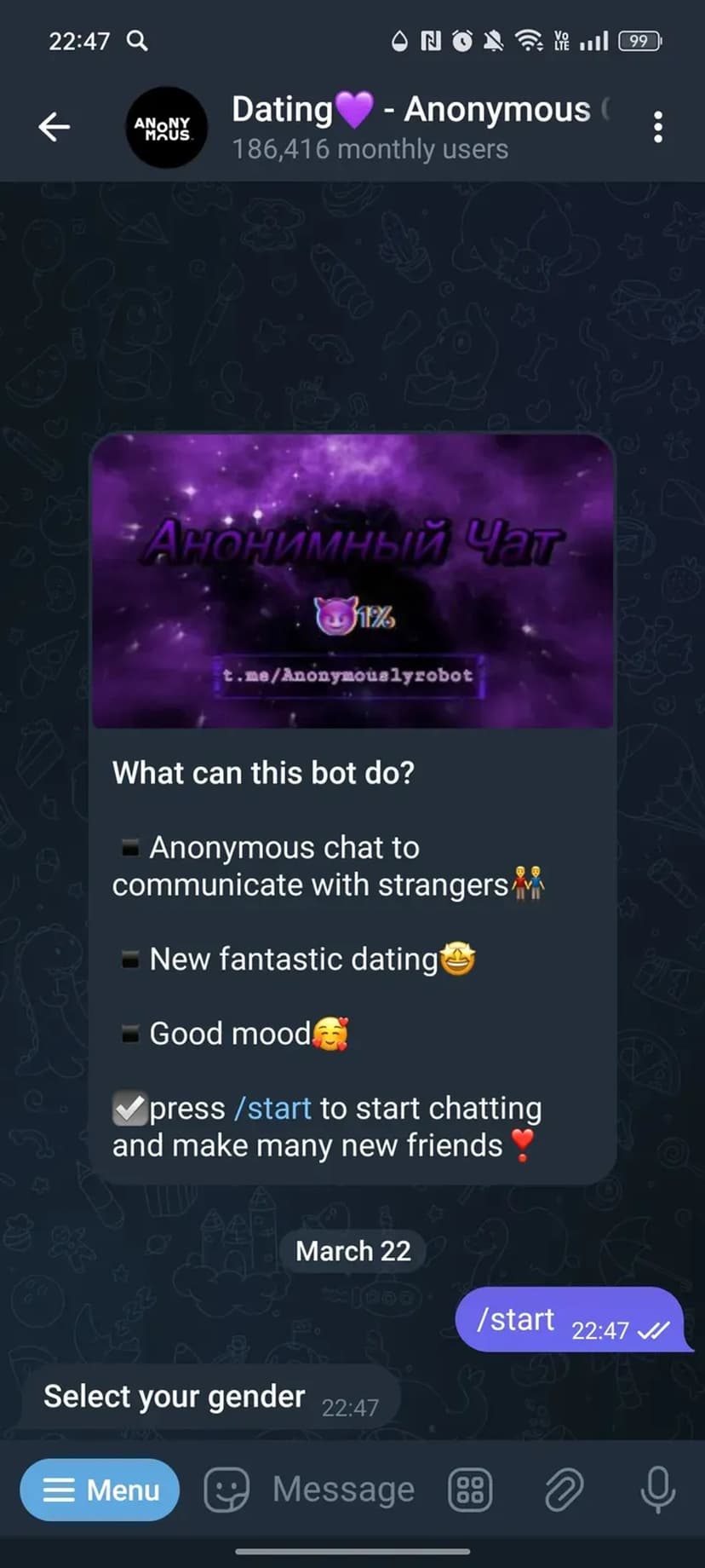 Datingπ - Anonymous Chat | Talk β Π°Π½ΠΎΠ½ΠΈΠΌΠ½ΡΠΉ ΠΏΡΠΈΠ²Π°ΡΠ½ΡΠΉ ΡΠ°Ρ ΠΎΠ΄ΠΈΠ½ Π½Π° ΠΎΠ΄ΠΈΠ½. Π£ΡΠ°ΡΡΠ½ΠΈΠΊΠΈ Π½Π΅ ΡΡΠ΅Π±ΡΡΡ ΠΈΠ΄Π΅Π½ΡΠΈΡΠΈΠΊΠ°ΡΠΈΠΈ, Π»ΠΈΡΠ½ΡΠ΅ Π΄Π°Π½Π½ΡΠ΅ Π½Π΅ ΡΠ°ΡΠΊΡΡΠ²Π°ΡΡΡΡ.