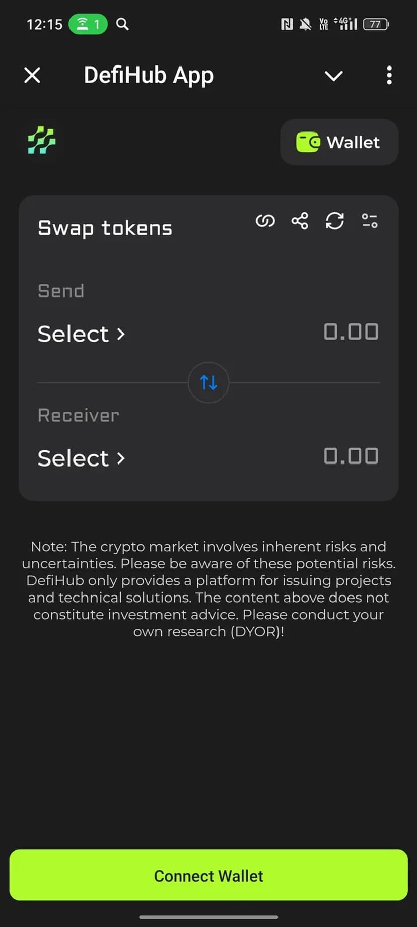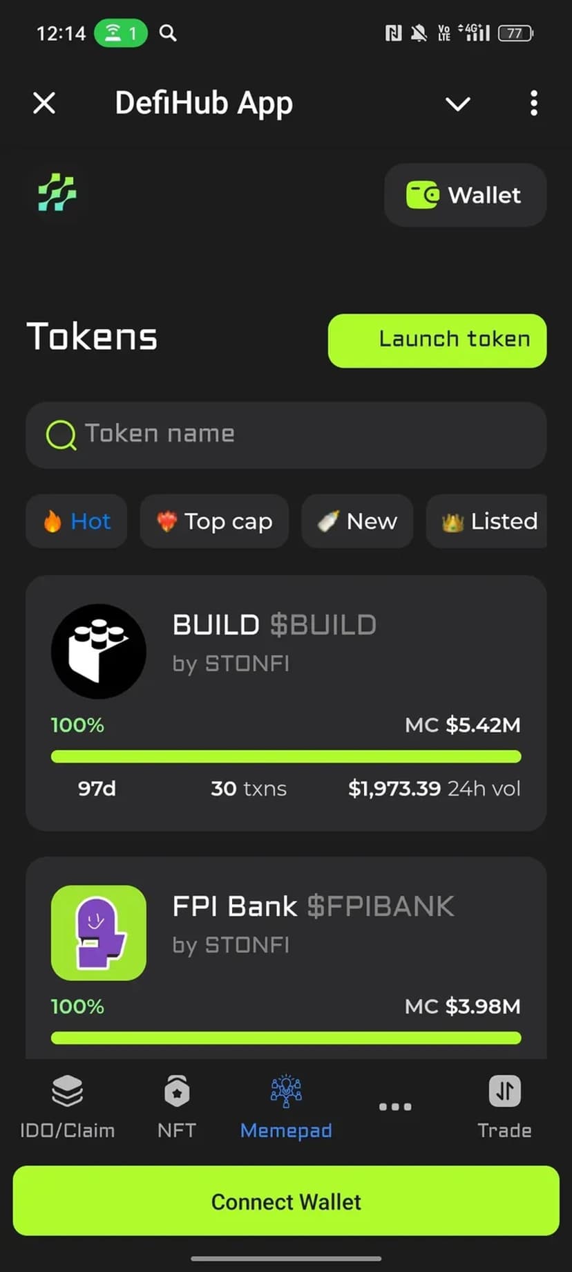 DefiHub App реализован как Telegram Web App и обеспечивает доступ к актуальной информации по децентрализованным финансам (DeFi): данные о проектах, отслеживание токенов, рыночная аналитика, агрегатор новостей и система уведомлений.