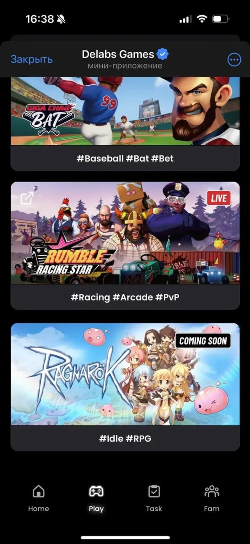 Delabs Games — платформа для любителей mid-core игр. Проекты отличаются более глубоким и продолжительным геймплеем по сравнению с обычными казуальными играми. Все игры запускаются прямо в Telegram без отдельной регистрации и установки.