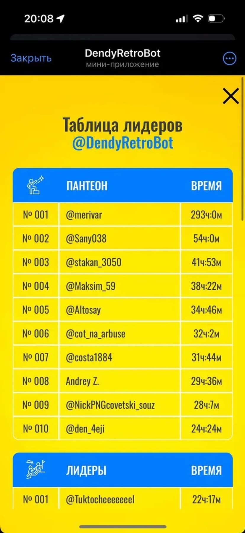 *Нажимая "Открыть в Telegram", вы перейдете к приложению DendyRetroBot в мессенджере Telegram