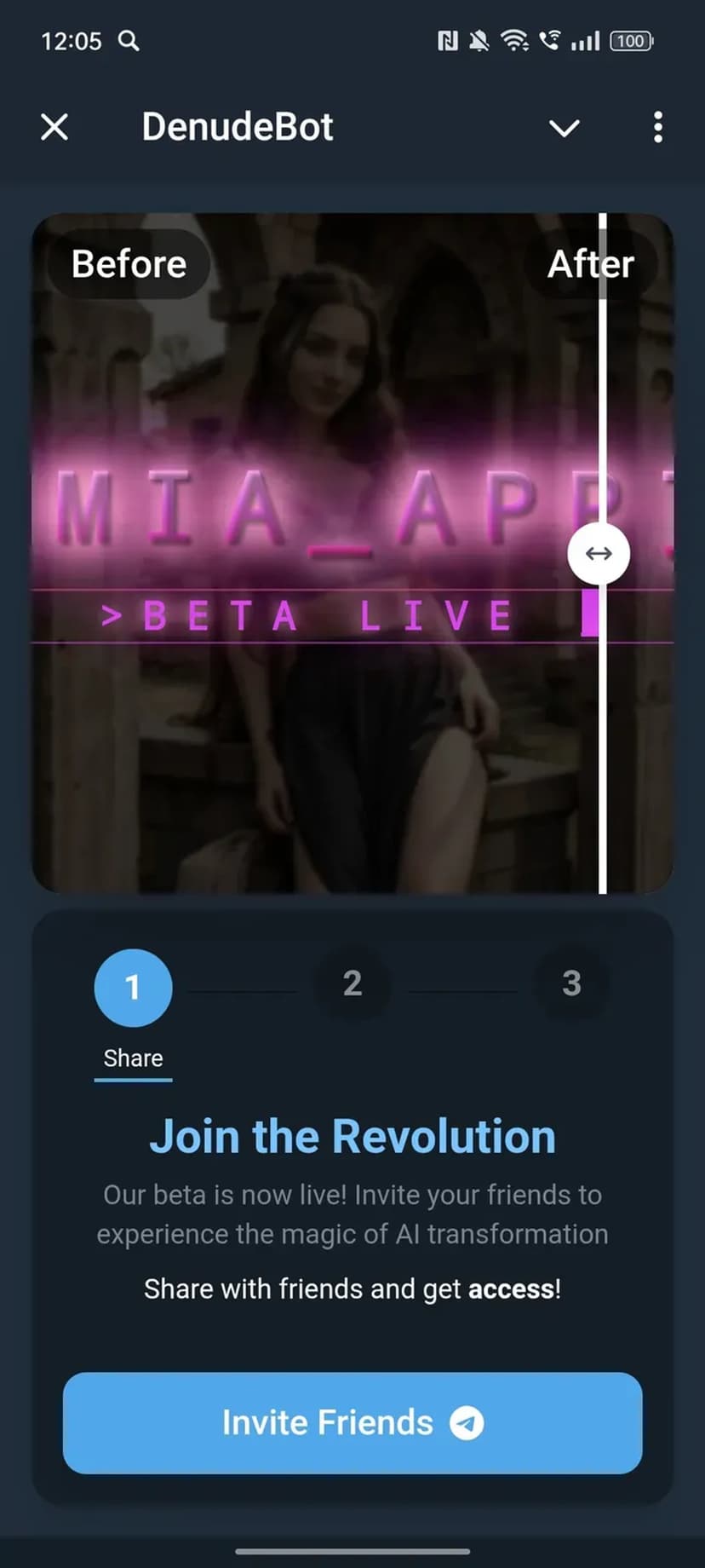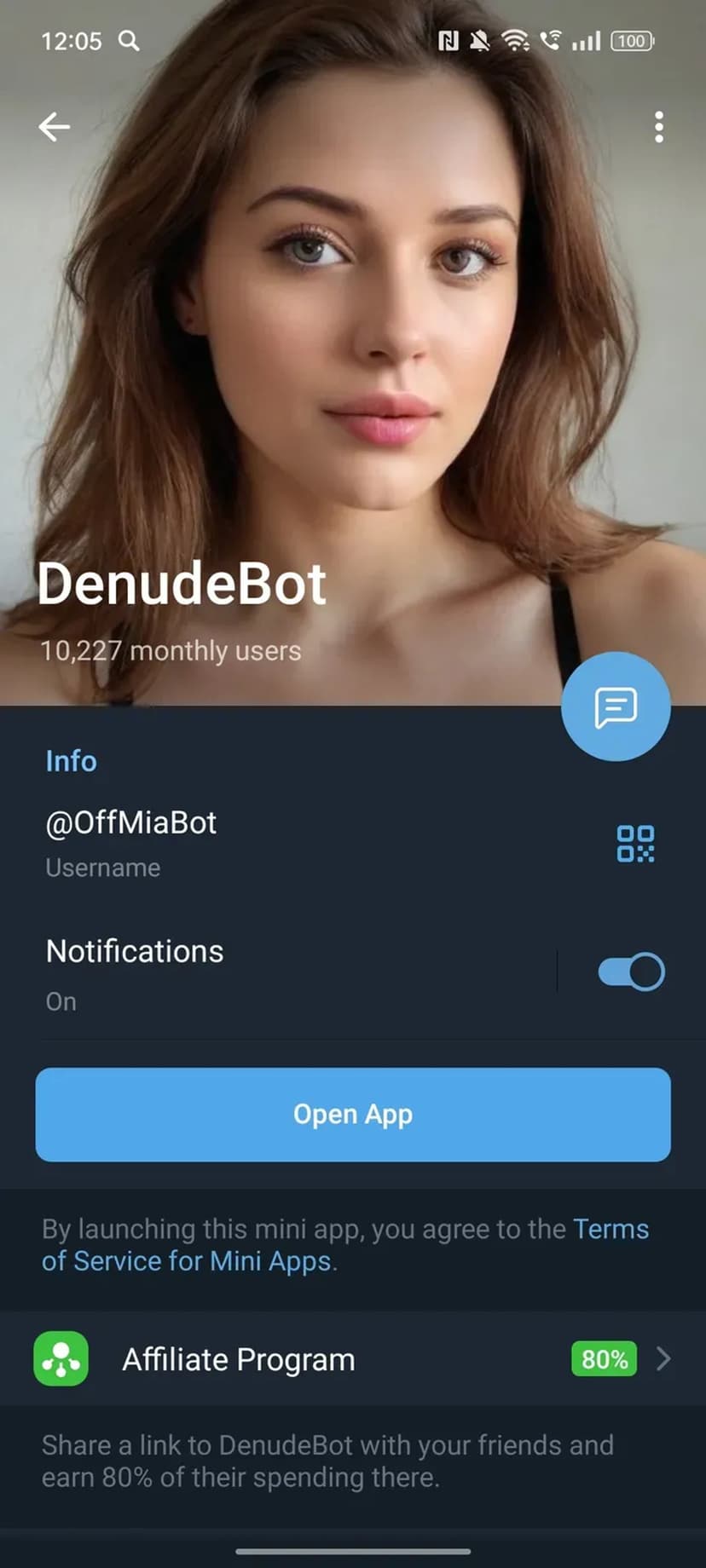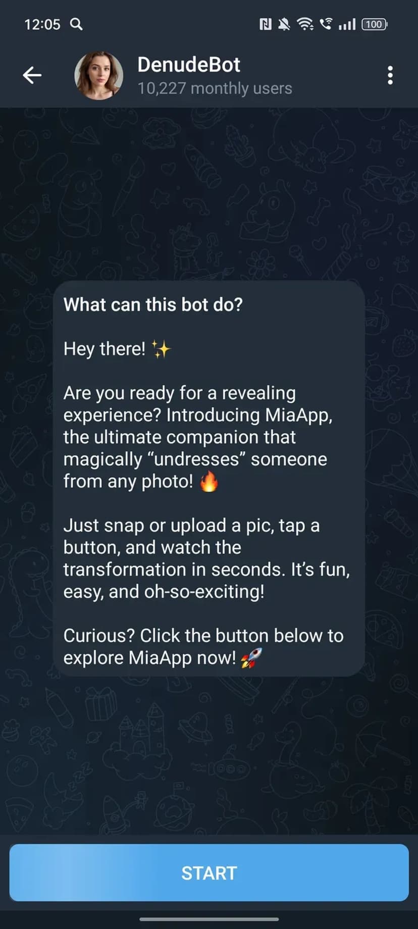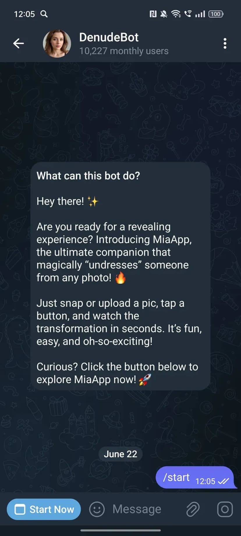 DenudeBot — чат-бот в Telegram, применяющий искусственный интеллект для преобразования загруженных фотографий с эффектом «раздевания» людей на изображениях.