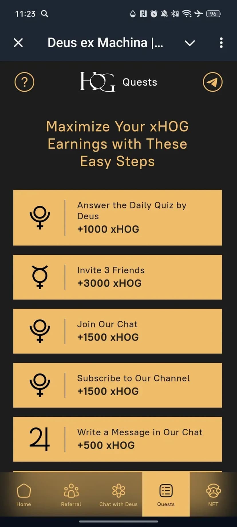 Deus ex Machina | Heart of Gold сочетает геймифицированные задания с Web3-интеграцией для взаимодействия с метавселенной Heart of Gold. Пользователи получают внутриигровую валюту xHOG за выполнение активностей, участие в игровых событиях и приглашение друзей, а также автоматически участвуют в распределении $HOG airdrop.