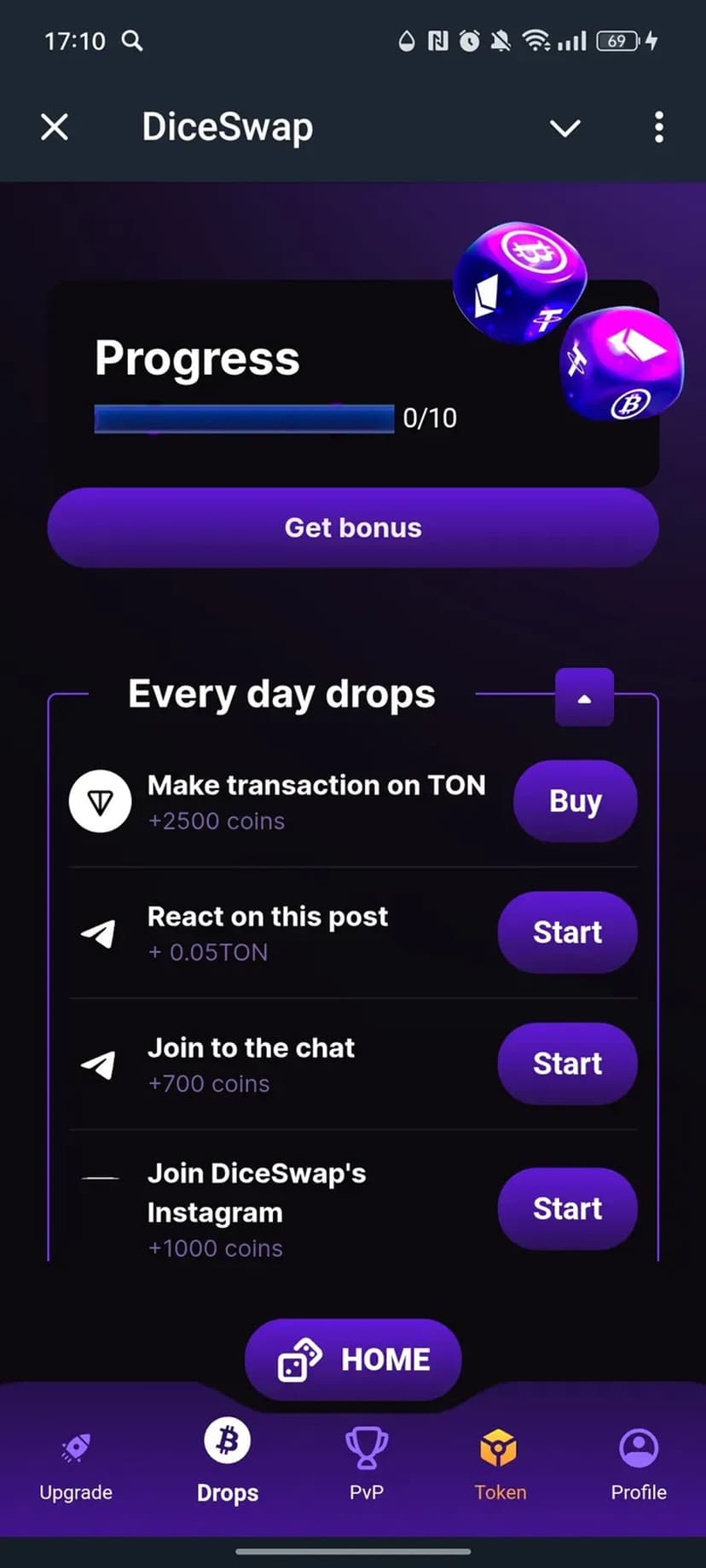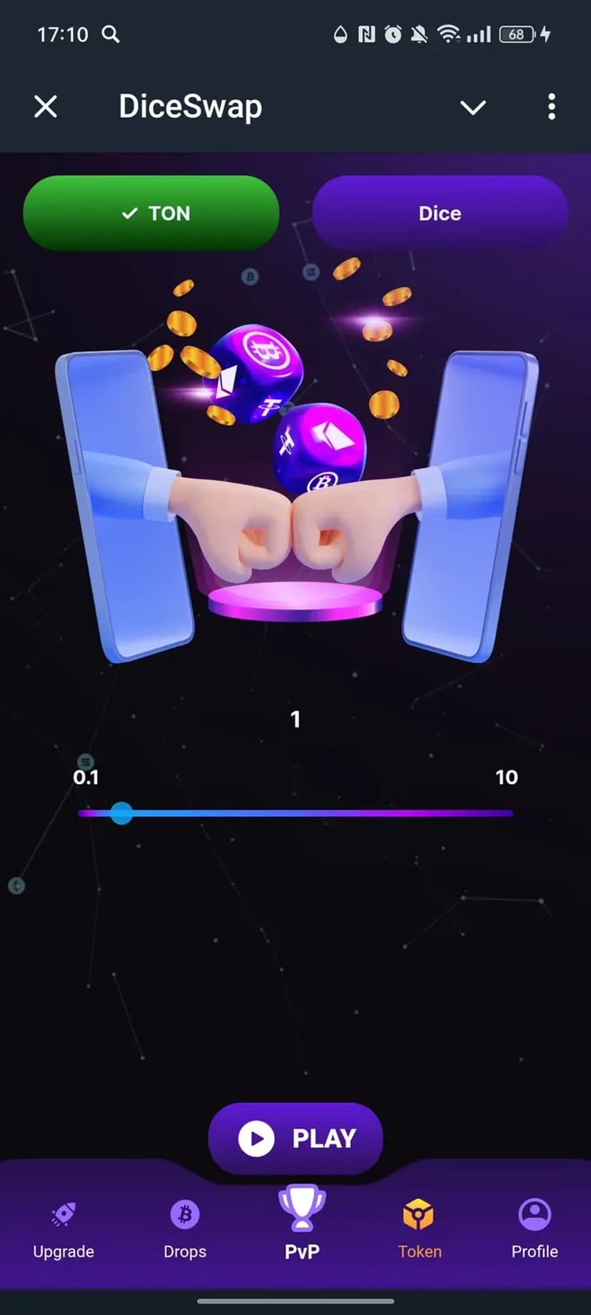 DiceSwap — мультиплеерная игра в Telegram: бросайте кости против друзей или случайных соперников, выигрывайте токены и при необходимости конвертируйте их в криптовалюту.
