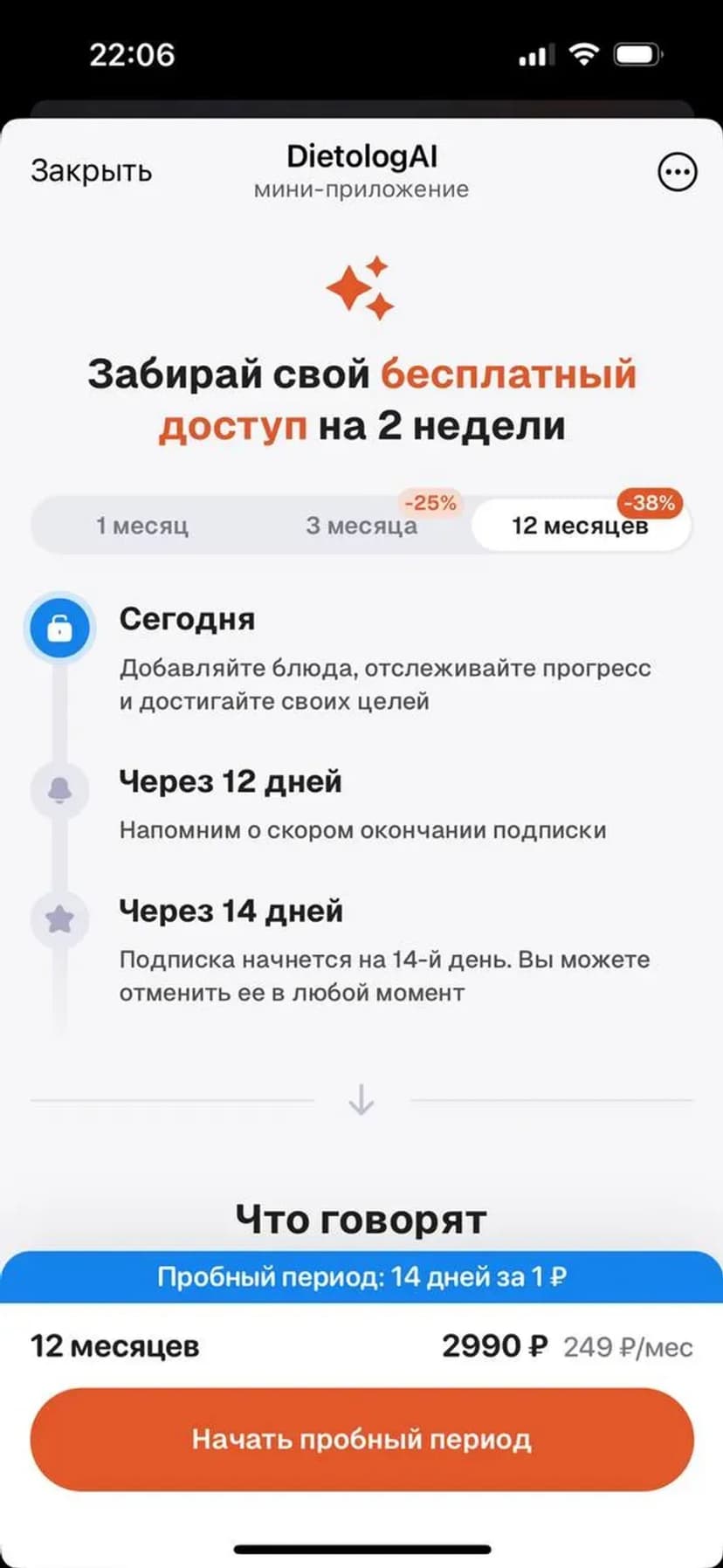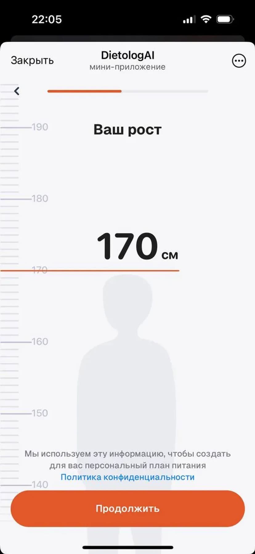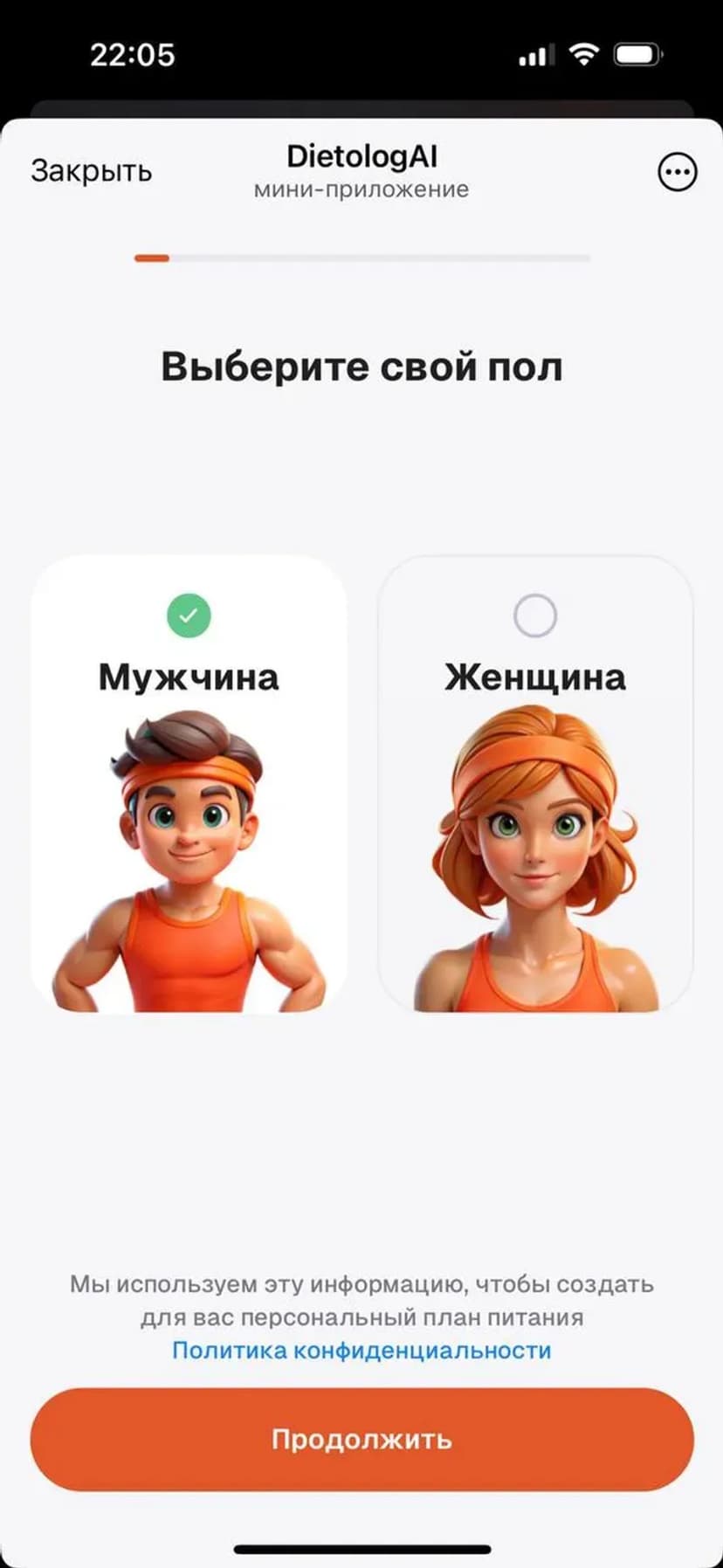 *Нажимая "Открыть в Telegram", вы перейдете к приложению Диетолог - трекер калорий в мессенджере Telegram