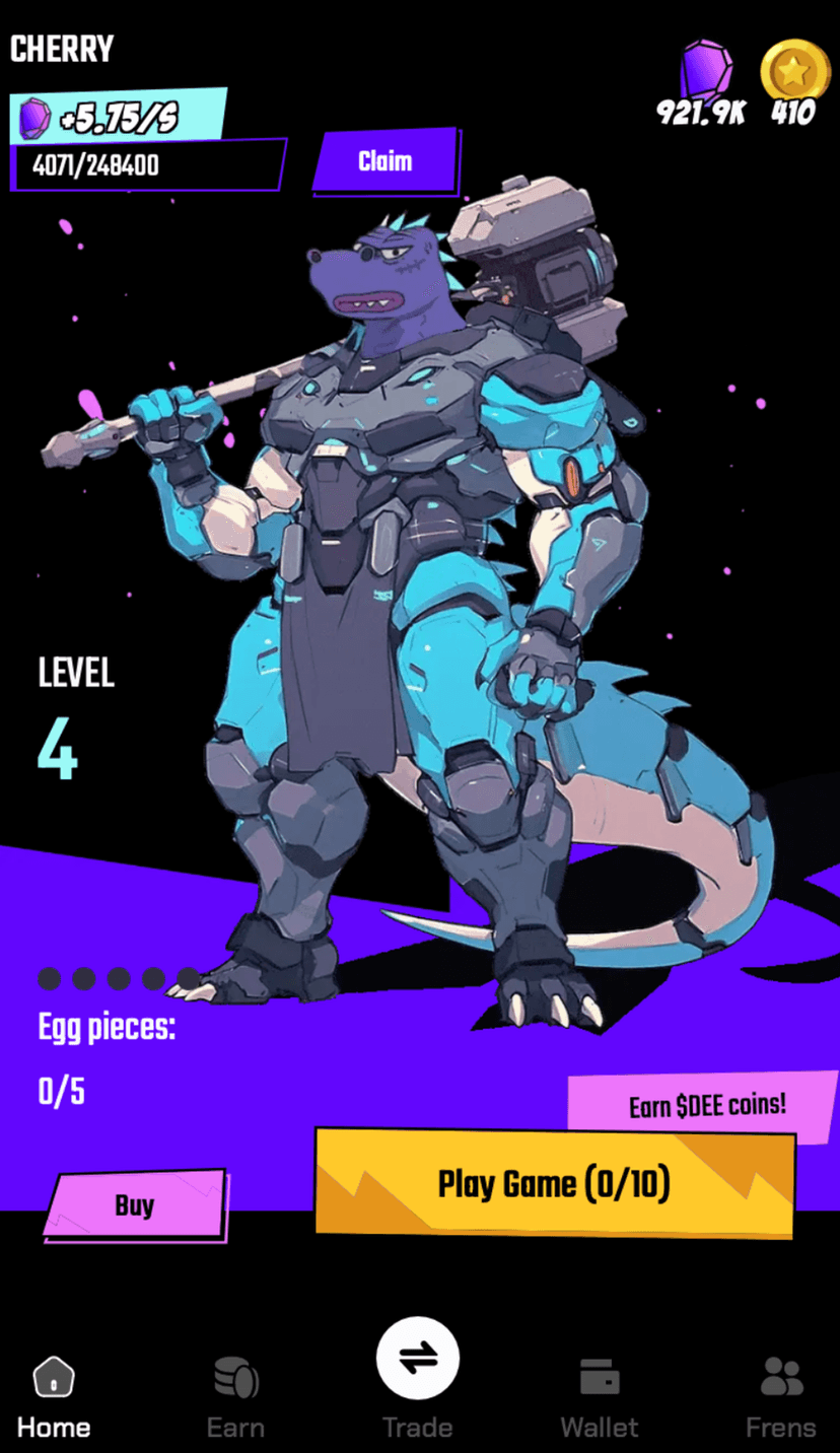 - Вылупление и развитие: Deeno появляется из яйца и повышает уровень по мере участия в событиях и выполнении заданий.