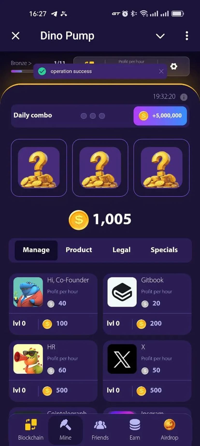 Dino Pump — мини‑игра в Telegram, где вы выступаете сооснователем виртуальной блокчейн‑сети. Развивайте проект через выполнение заданий, покупку апгрейдов и привлечение новых участников; ваш прогресс влияет на состояние всей сети и стимулирует совместную работу.
