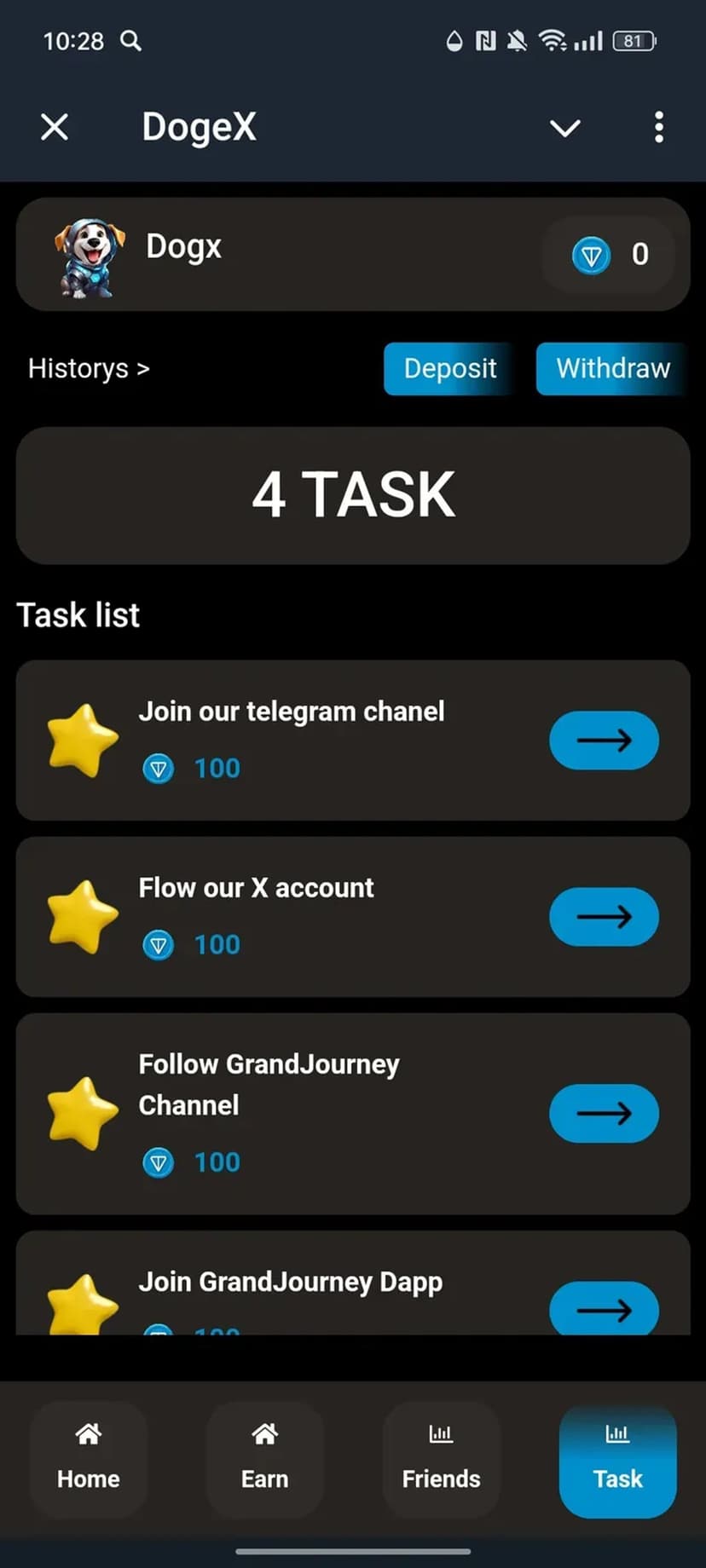 *Нажимая "Открыть в Telegram", вы перейдете к приложению DogeX в мессенджере Telegram