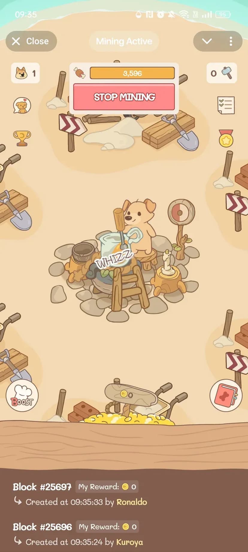 - Вывод средств: начисленные $DOGES можно вывести после окончания майнинговой фазы, когда весь пул токенов будет распределён между игроками.