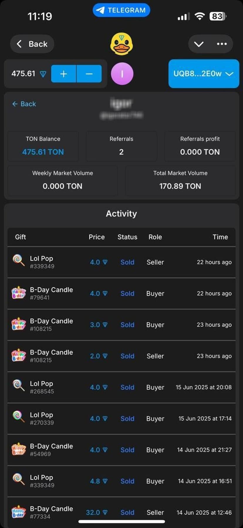 - Основные функции: выставление лотов, покупка подарков, сбор коллекций — все операции проводятся через TON.