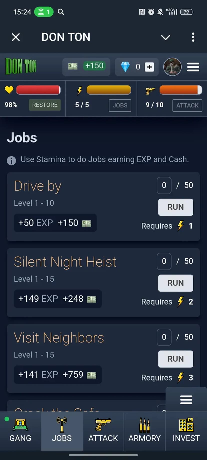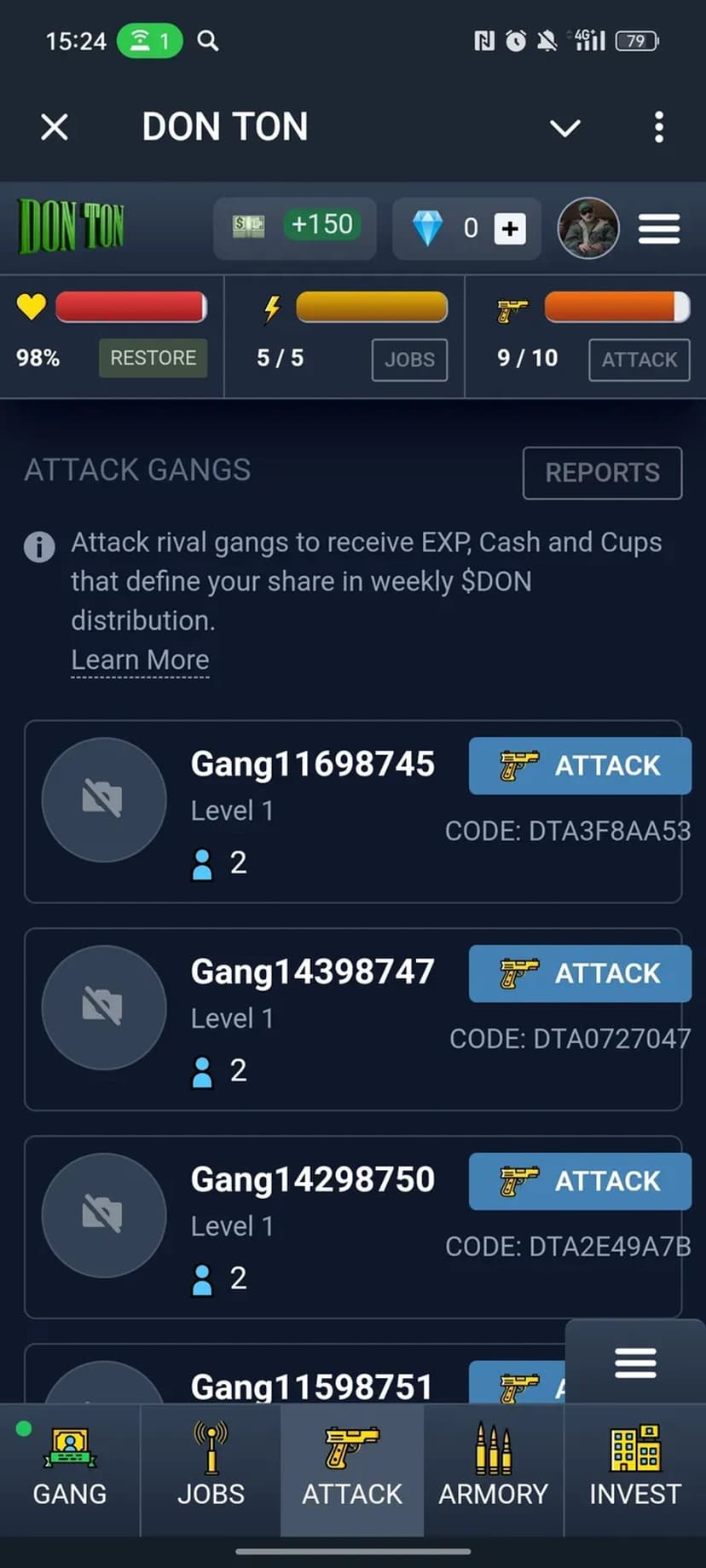 DON TON — игровой бот в Telegram, где вы создаёте и развиваете мафиозную империю: вербуете соратников, экипируете гангстеров и сражаетесь за влияние и награды.