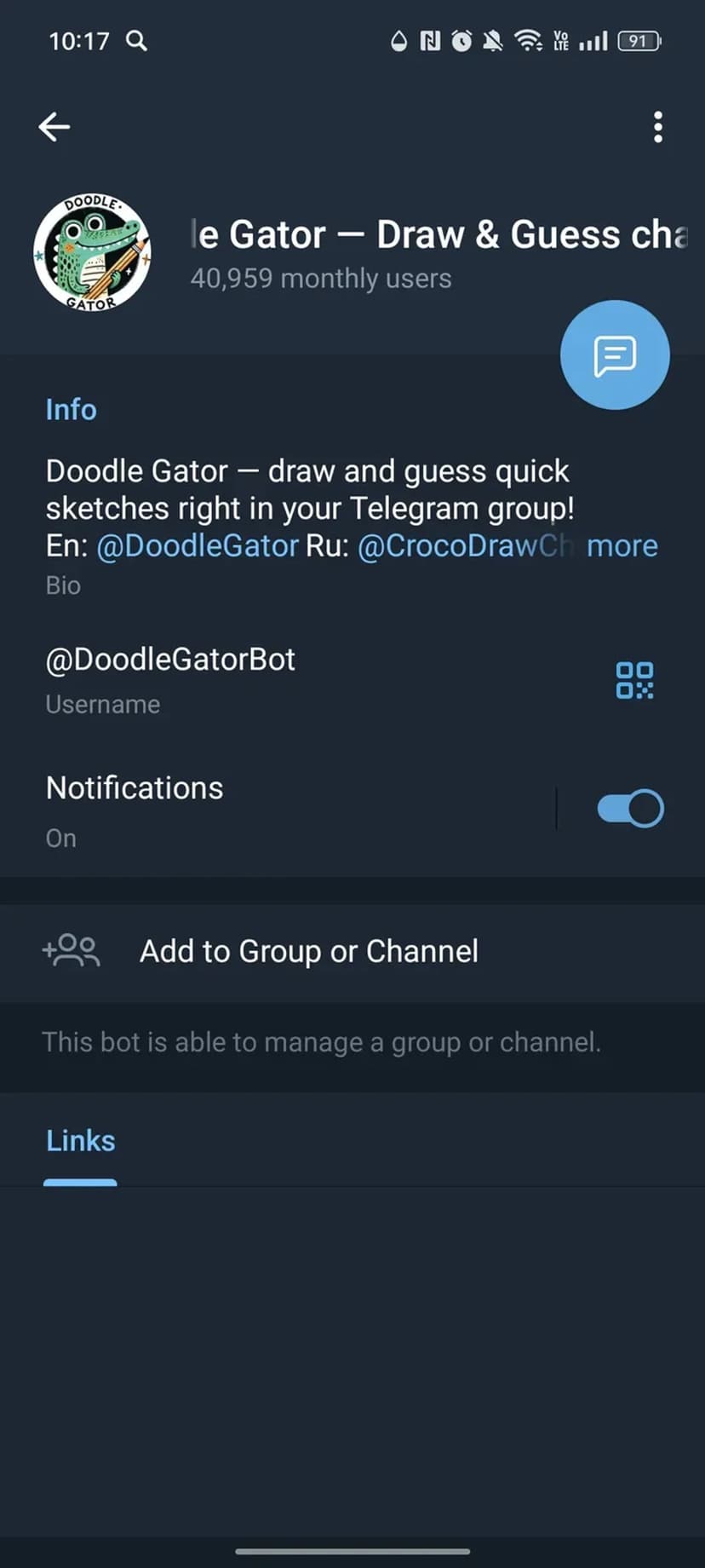 *Нажимая "Открыть в Telegram", вы перейдете к приложению Doodle Gator — Draw & Guess charades в мессенджере Telegram