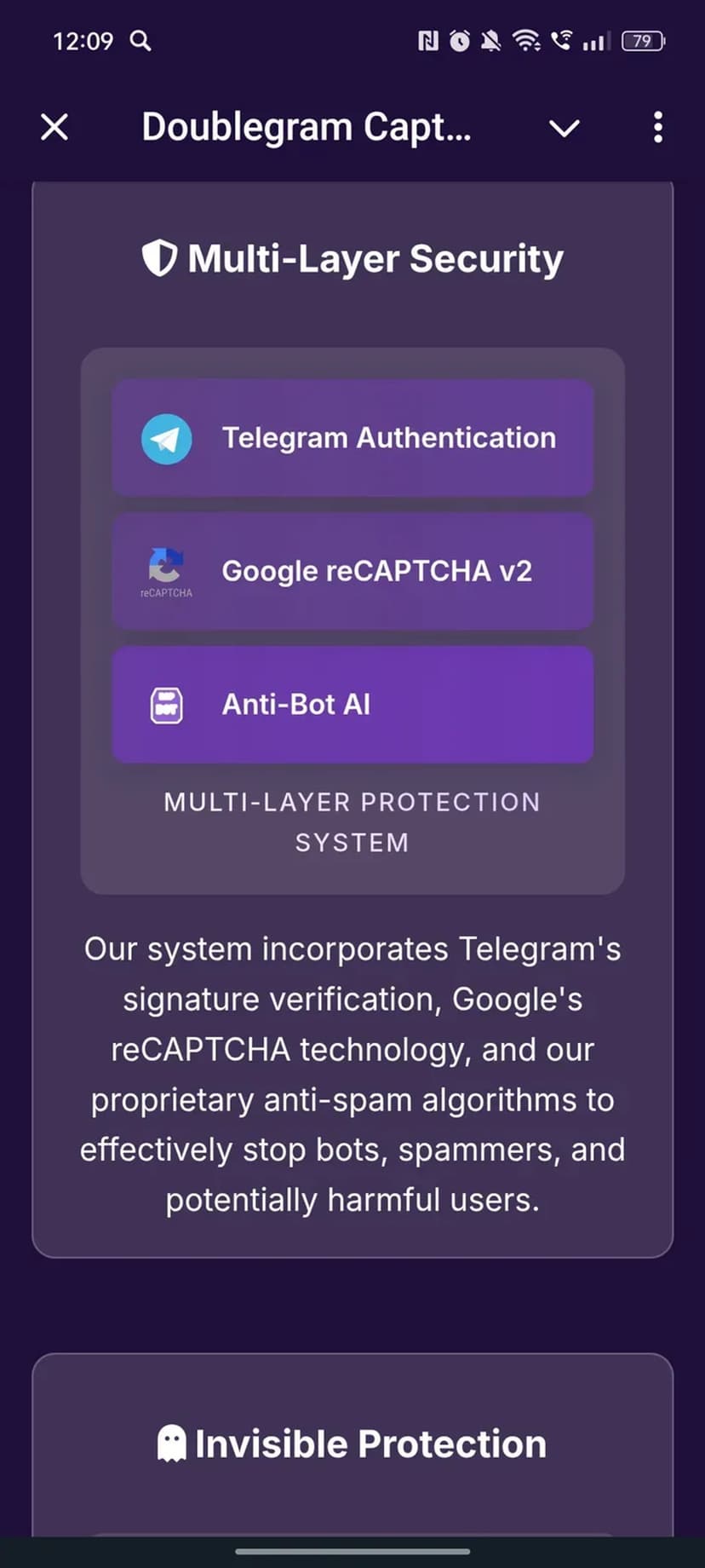*Нажимая "Открыть в Telegram", вы перейдете к приложению Doublegram Captcha в мессенджере Telegram