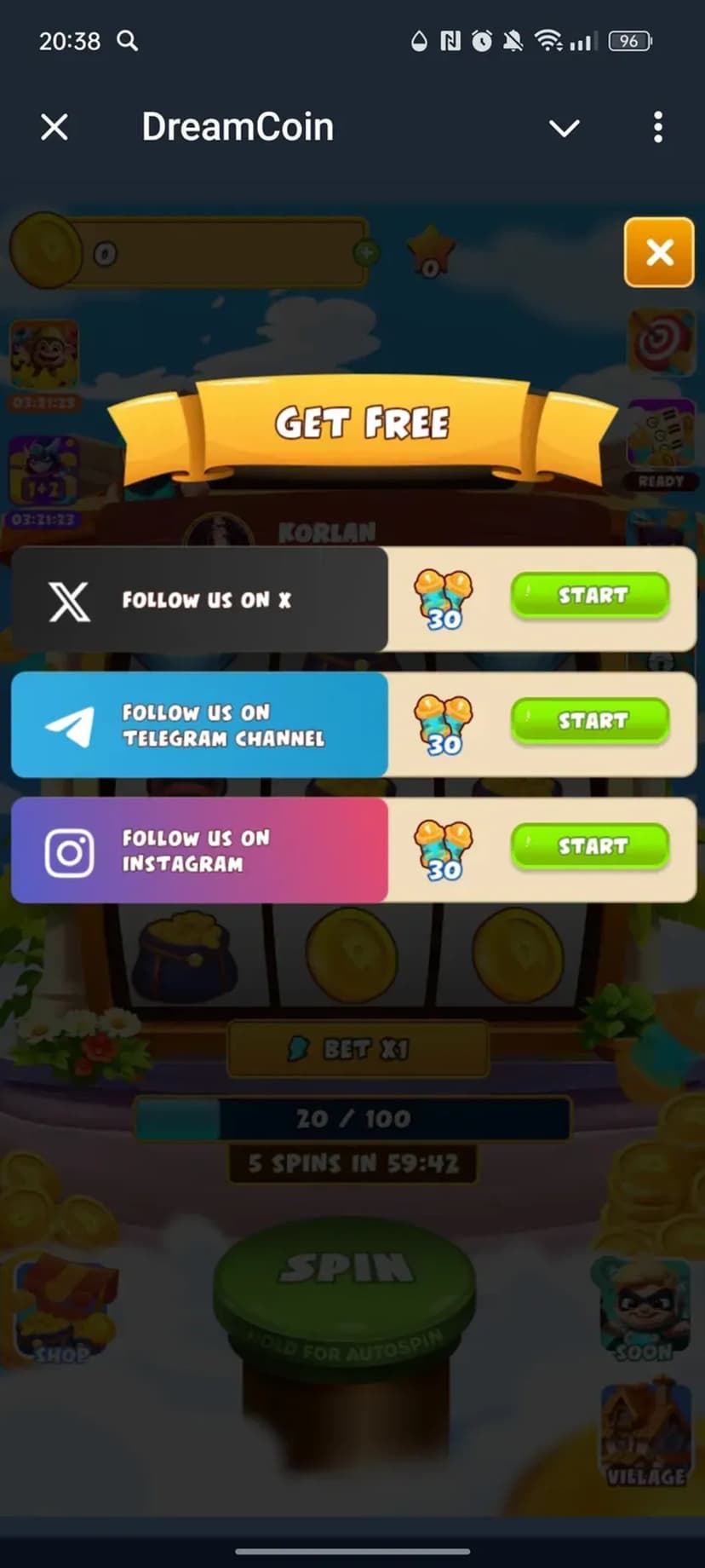 DreamCoin — игровая реализация механики Fortune Wheel прямо в мессенджере: вращайте колесо, выигрывайте внутриигровую валюту (gold) и накапливайте очки для участия в крупных призовых розыгрышах.