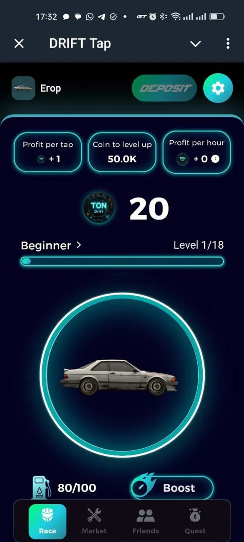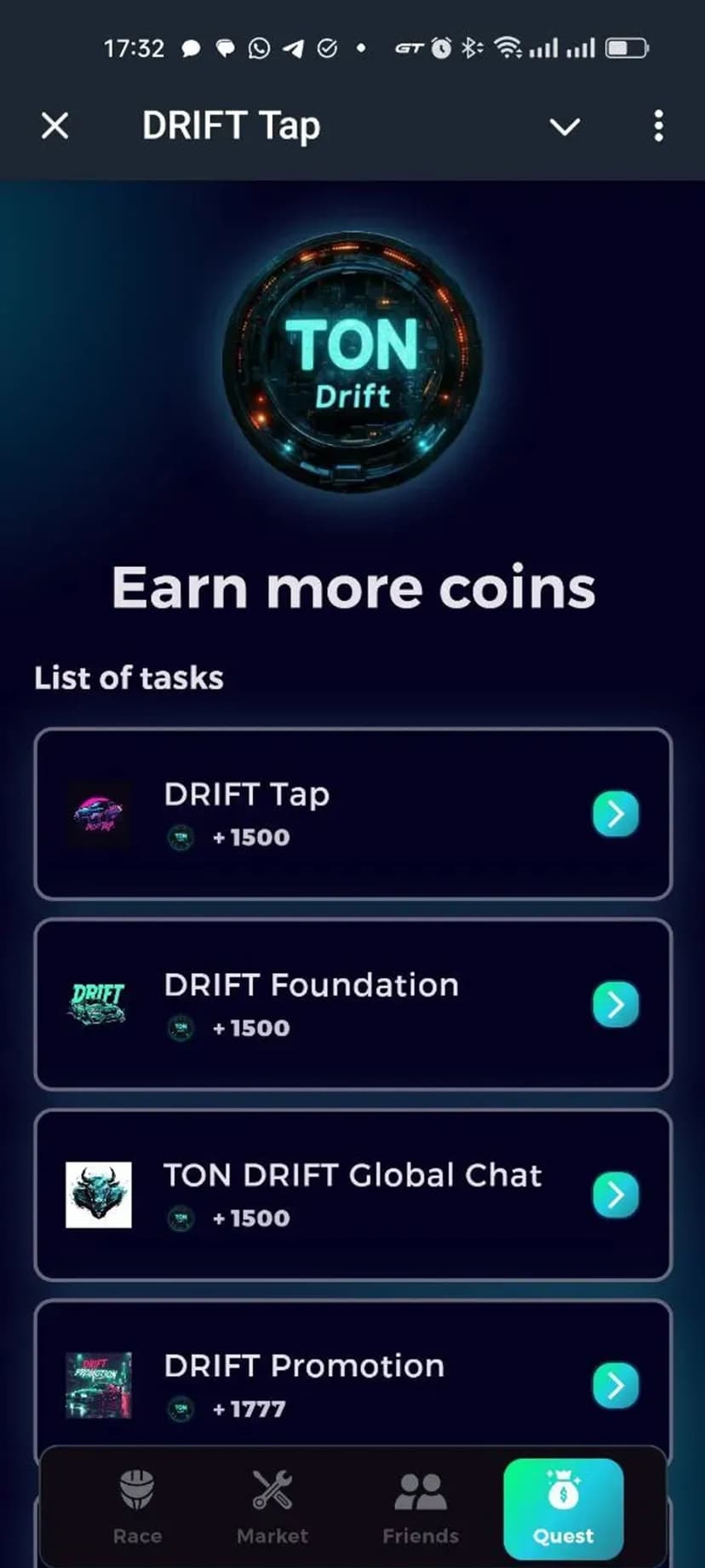DRIFT Tap — динамичная аркадная гонка в Telegram: тапайте для дрифта, собирайте очки и стремитесь к вершине таблицы лидеров.