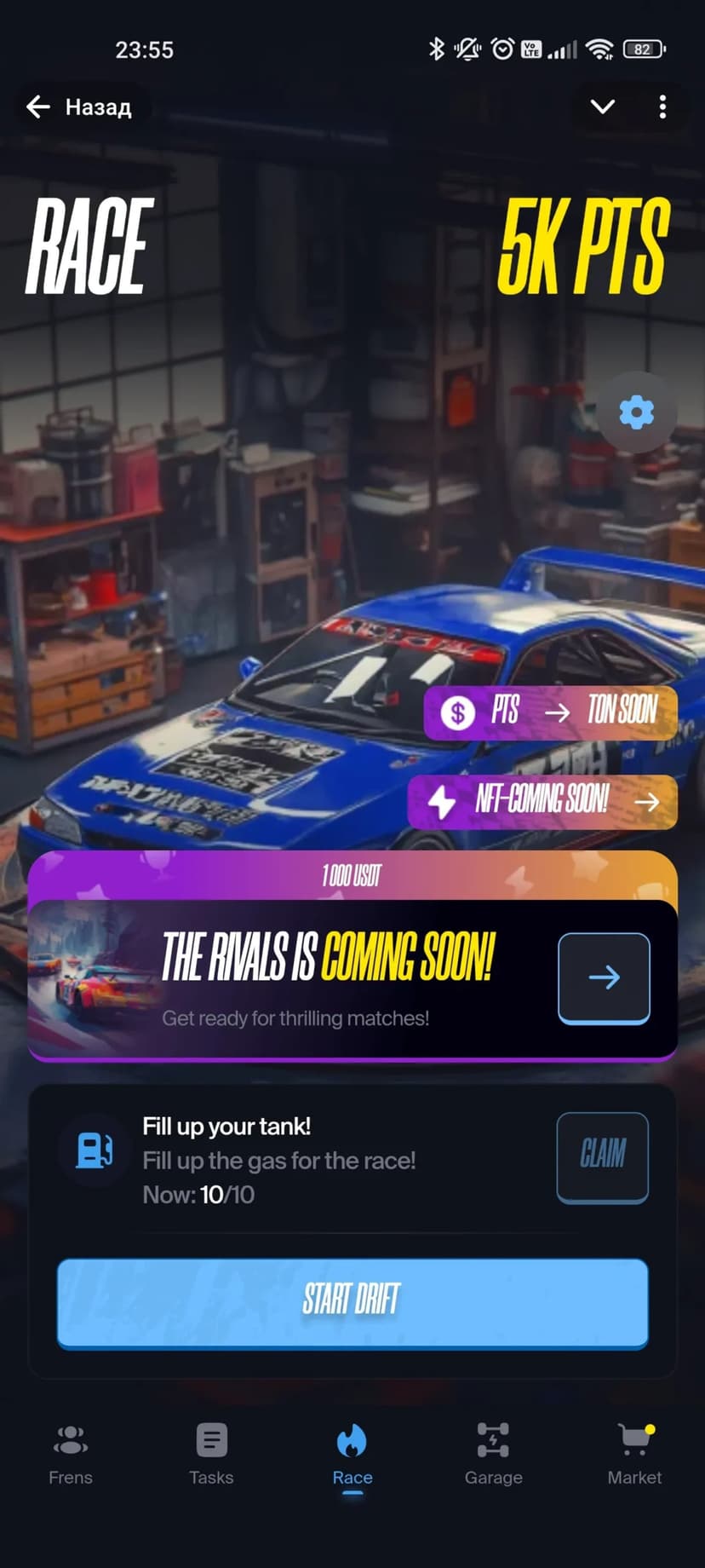 Дрифт-гонки с коллекционированием авто, кастомизацией и заработком PTS/токенов