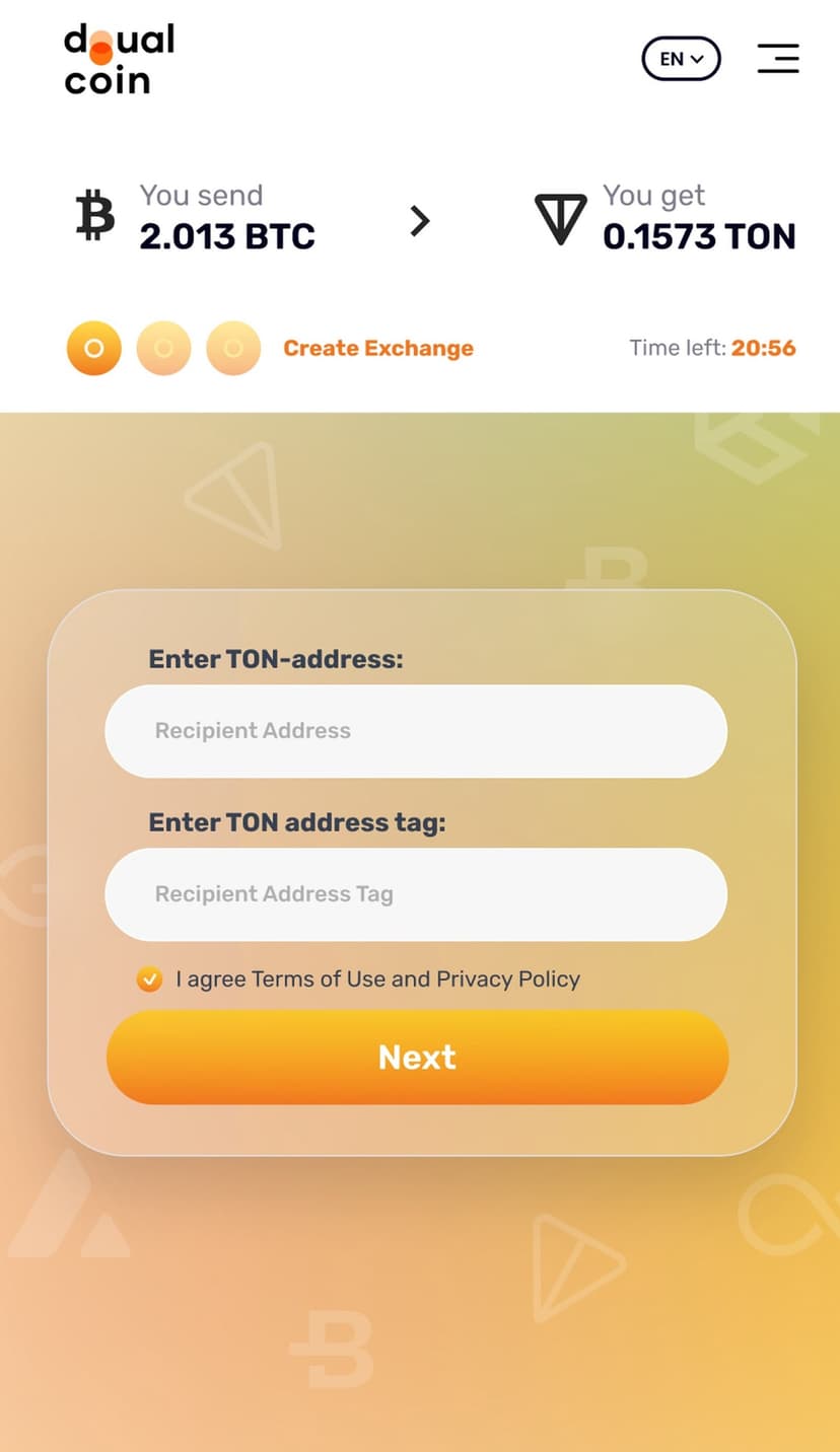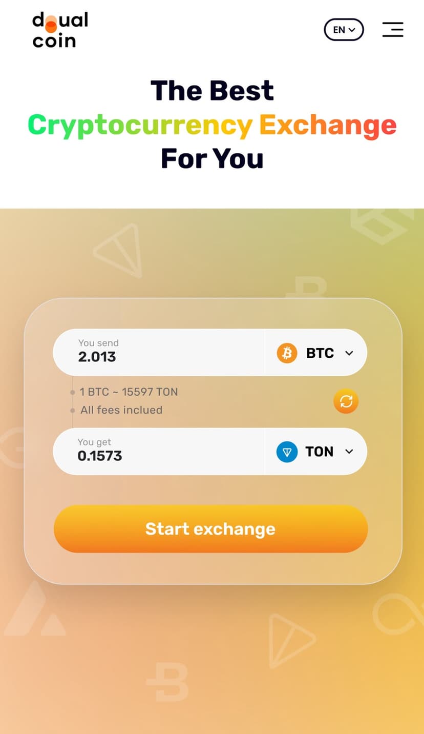 Dualcoin предоставляет мгновенный обмен криптовалют между пользователями из разных стран, поддерживая Bitcoin, Ethereum, Litecoin, Tether и ряд других альткоинов. Сервис предлагает конкурентные курсы в реальном времени и упрощает процесс обмена без сложной регистрации.