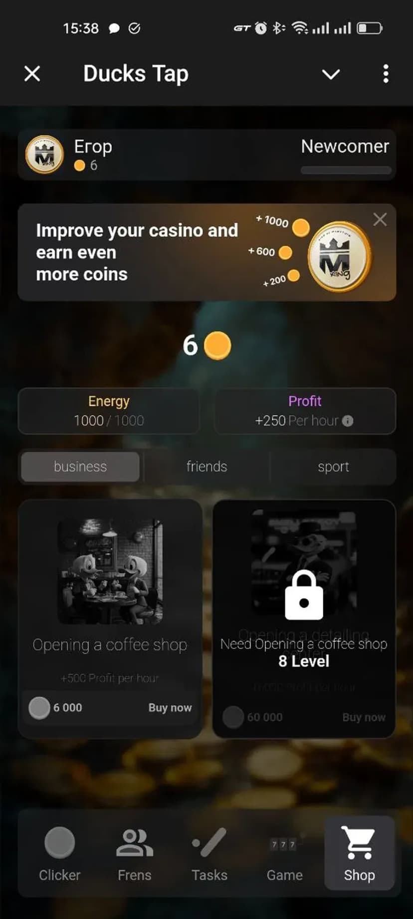 Ducks Tap — игровой симулятор с элементами экономической стратегии: становитесь совладельцем виртуальных компаний, инвестируйте в доли и получайте доход по мере развития бизнеса.