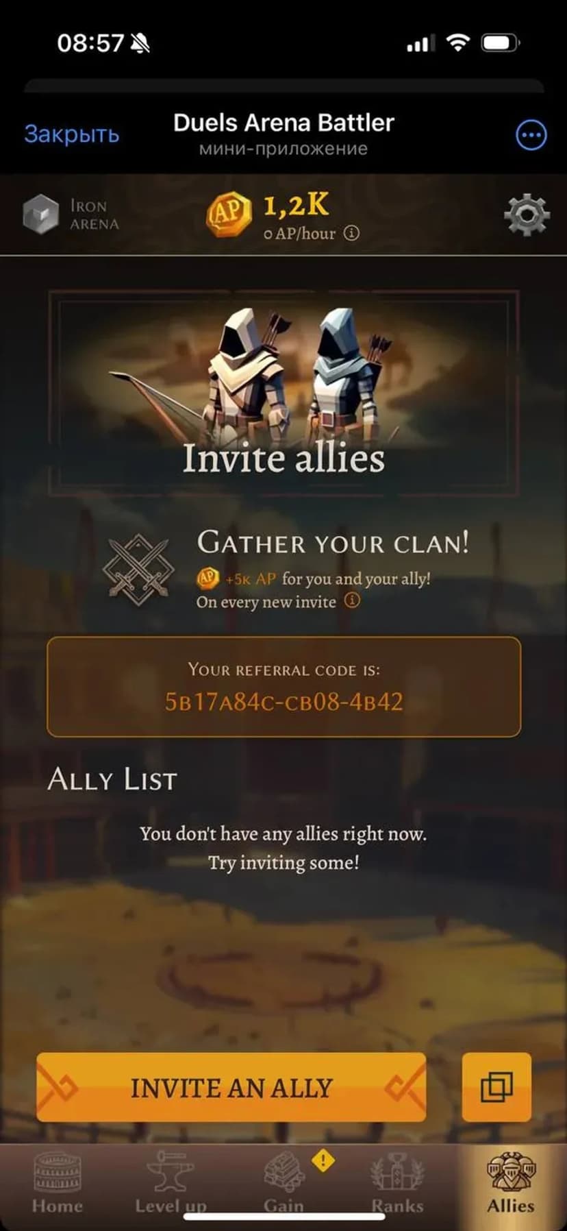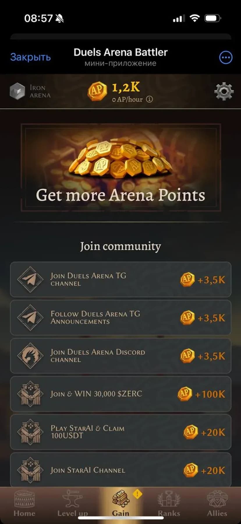 *Нажимая "Открыть в Telegram", вы перейдете к приложению Duels Arena Battler в мессенджере Telegram