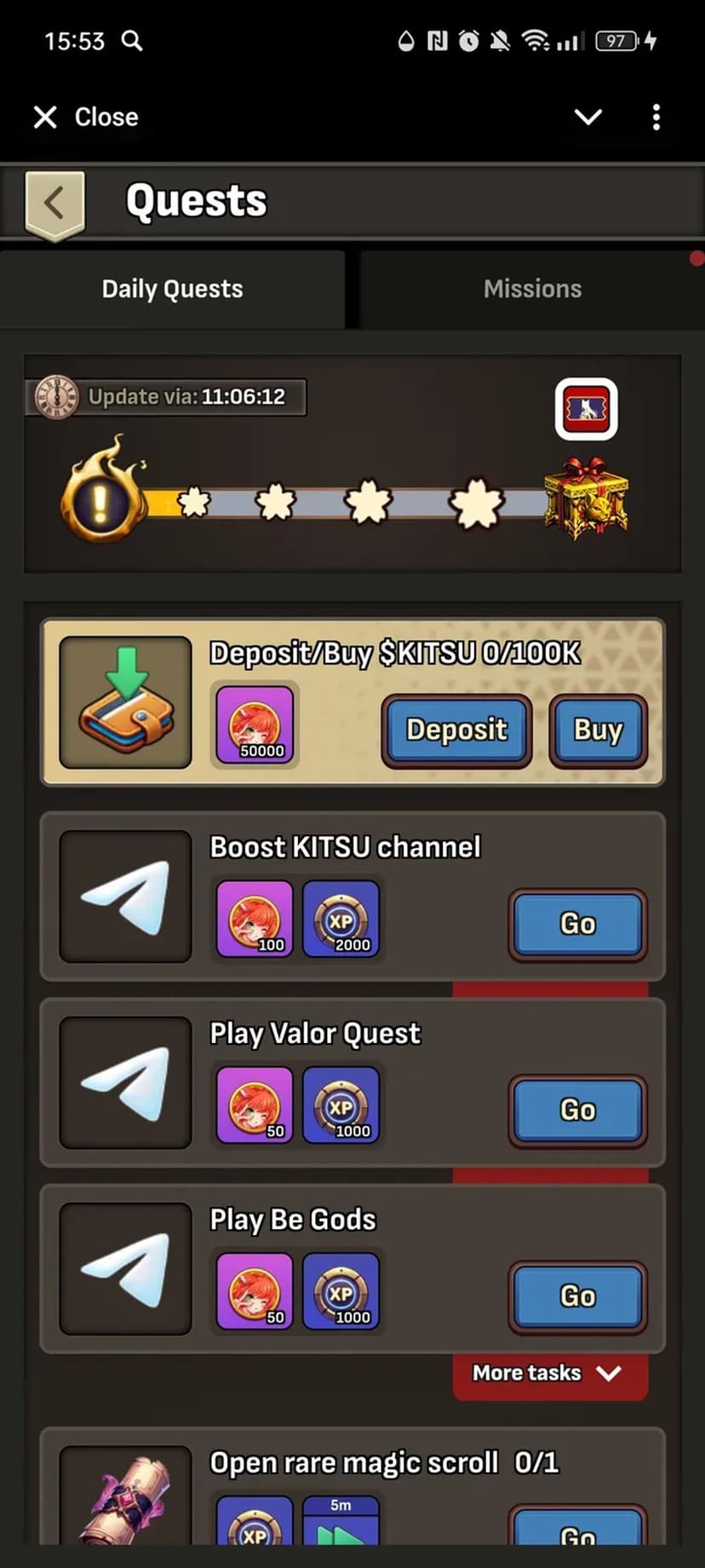 *Нажимая "Открыть в Telegram", вы перейдете к приложению Dungeons of KITSU в мессенджере Telegram