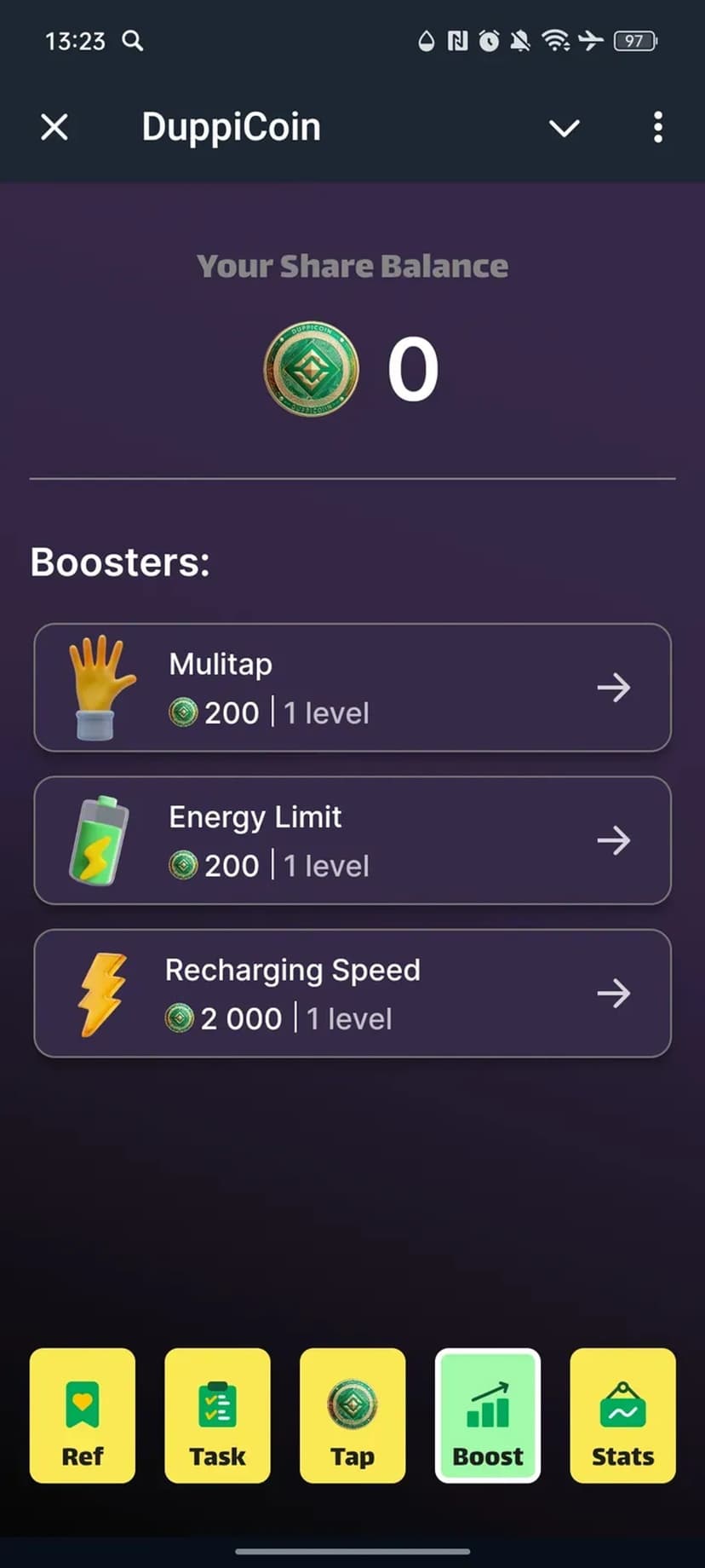DuppiCoin — мини‑приложение, в котором пользователи получают внутренние монеты за простые действия: нажатия на экран и привлечение друзей по реферальной ссылке. Награждение происходит мгновенно, а геймифицированная механика делает процесс накопления понятным и увлекательным.