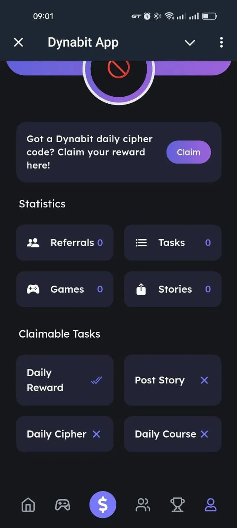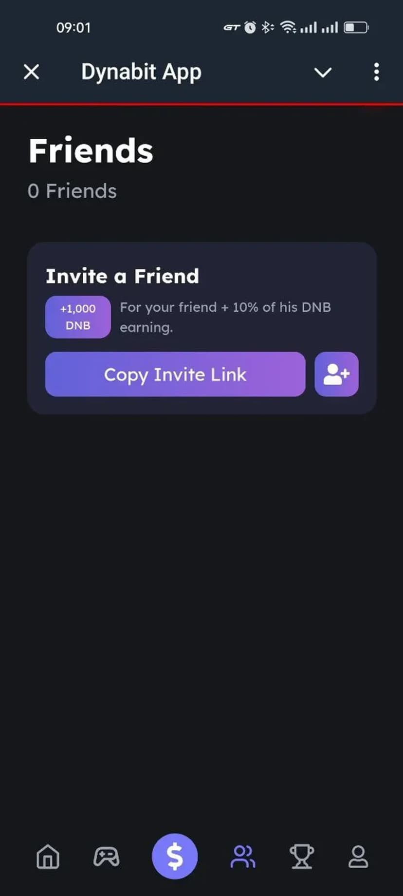 Dynabit App предоставляет доступ к экосистеме Dynabit на блокчейне TON. С приветственного экрана можно быстро перейти в ключевые разделы: ежедневные задания, ферма токенов, образовательные курсы, приглашения друзей и игровые активности.